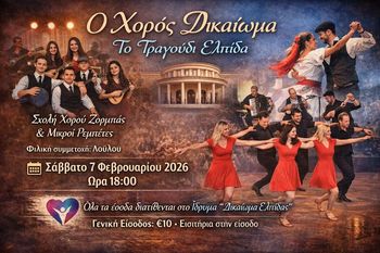 Φιλανθρωπική βραδιά χορού και τραγουδιού στη Λάρνακα στις 7 Φεβρουαρίου 2026, με μήνυμα πολιτισμού και ελπίδας. Scroll down for English version 👇 Μια ξεχωριστή καλλιτεχνική βραδιά αφιερωμένη στον πολιτισμό, την αλληλεγγύη και τον άνθρωπο, μέσα από τον χορό και το τραγούδι. Η Σχολή Χορού Ζορμπάς και οι Μικροί Ρεμπέτες, με τη συνοδεία άριστων μουσικών, παρουσιάζουν ένα πρόγραμμα που αναδεικνύει τη δύναμη της τέχνης ως φωνή, δικαίωμα και ελπίδα. Η εκδήλωση φιλοξενείται στο Δημοτικό Θέατρο Γ. Λυκούργος και έχει φιλανθρωπικό χαρακτήρα. Όλα τα έσοδα θα διατεθούν στο Ίδρυμα Δικαίωμα Ελπίδας, στηρίζοντας άτομα με αναπηρίες και ενισχύοντας δράσεις κοινωνικής προσφοράς. 🎟️ Εισιτήρια από €10. 🗓️ Πρόγραμμα Σάββατο, 7 Φεβρουαρίου 2026 | 18:00 (Δημοτικό Θέατρο «Γ. Λυκούργος») 🎫 Εισιτήρια στην είσοδο του θεάτρου EN A special cultural evening dedicated to solidarity, humanity, and hope, expressed through dance and song. Zorbas Dance School and Mikroi Rebetes, accompanied by accomplished musicians, present a heartfelt programme highlighting the power of art as a voice and a right for all. The event takes place at the Georgios Lykourgos Municipal Theatre of Larnaka and has a charitable focus. All proceeds will be donated to the Dikaioma Elpidas Foundation, supporting people with disabilities and related initiatives. 🎟️ Ticket prices start from €10. 🗓️ Schedule Saturday, February 7, 2026 | 18:00 (Georgios Lykourgos Municipal Theatre) 🎫 Tickets available at the theatre entrance Explore more Live Shows & Comedy → eventor.com.cy/events/category/live-shows---comedy-148 ❓ FAQ Q: What is the theme of the event? A: The evening celebrates dance and song as expressions of hope, culture, and solidarity. Q: Where do the proceeds go? A: All proceeds support the Dikaioma Elpidas Foundation for people with disabilities. Q: How can I buy tickets? A: Tickets are available at the theatre entrance on the day of the event. Q: How long does the event last? A: The event duration is approximately three hours.