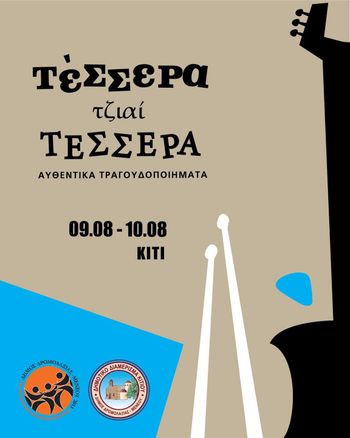 👉 Scroll down for English version 🎶 Τέσσερα τζ̆αι Τέσσερα – Αυθεντικά Τραγουδοποιήματα 📅 Ημερομηνίες: Σάββατο 9 και Κυριακή 10 Αυγούστου 2025 🕔 Ώρα: 5 μ.μ. – 12 τα μεσάνυχτα 📍 Τοποθεσία: Κήποι Δημοτικού Συμβουλίου Κιτίου Ένα διήμερο μουσικό φεστιβάλ αφιερωμένο στην αυθεντική τραγουδοποιία και τους Κύπριους δημιουργούς που τολμούν να εκφραστούν μέσα από στίχους και μουσικές με ουσία. Το "Τέσσερα τζ̆αι Τέσσερα" είναι ένα φεστιβάλ που τιμά τον αυθεντικό ήχο, τις ιστορίες που γεννιούνται μέσα από την εμπειρία, και τη δύναμη του τραγουδιού να ενώνει. 🌟 Highlights: • Ζωντανές εμφανίσεις από αυθεντικούς δημιουργούς • Ατμόσφαιρα φιλική και καλλιτεχνική • Τοπικά εδέσματα & ποτά • Δωρεάν είσοδος για όλους EN 🎶 Tessera tzia Tessera – Authentic Songwriters Festival 📅 Dates: Saturday 9 & Sunday 10 August 2025 🕔 Time: 5:00 PM – 12:00 Midnight 📍 Location: Gardens of Kiti Municipal Council A two-day open-air festival dedicated to original Cypriot songwriters and musicians who express raw stories through lyrics and melody. "Tessera tzia Tessera" celebrates the authentic, the heartfelt, and the beautifully unfiltered sound of local voices coming together. 🌟 Highlights: • Live performances by authentic songwriters • Creative, welcoming vibe under the stars • Local food & drinks available • Free entrance