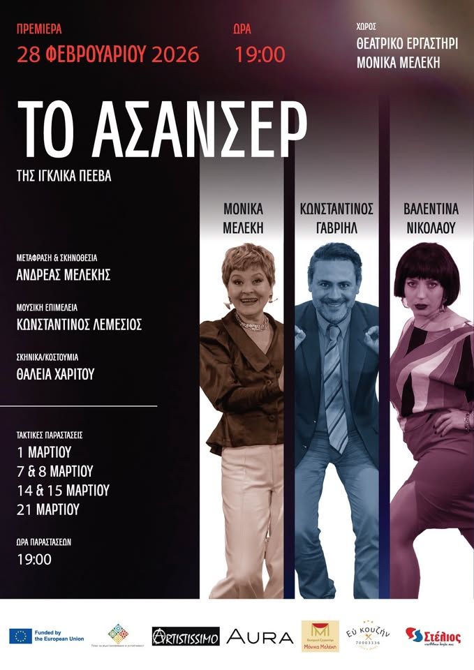 Το Ασανσέρ, σύγχρονη θεατρική παράσταση στη Λάρνακα, κάνει πρεμιέρα τον Φεβρουάριο 2026 και εξερευνά την εξουσία και τις σχέσεις. Scroll down for English version 👇 Ένα ασανσέρ. Άνθρωποι μπαίνουν και βγαίνουν. Χρήματα πέφτουν. Κανείς δεν ξέρει ποιος ελέγχει το κουμπί. Το «Το Ασανσέρ» της Ιγκλίκα Πέεβα είναι μια σύγχρονη θεατρική παράσταση που μιλά με αιχμηρό και ποιητικό τρόπο για τη σημερινή πραγματικότητα, τις σχέσεις, την εξουσία και τις μικρές φυλακές της καθημερινότητάς μας. Σε έναν κλειστό σκηνικό χώρο όπου δεν υπάρχει έξοδος κινδύνου, η αλήθεια αποκαλύπτεται σταδιακά, δημιουργώντας ένταση και προβληματισμό. Η παράσταση παρουσιάζεται στο Θεατρικό Εργαστήρι Μόνικα Μελέκη και έχει διάρκεια 1 ώρα και 15 λεπτά. Τους ρόλους ερμηνεύουν οι Μόνικα Μελέκη, Κωνσταντίνος Γαβριήλ και Βαλεντίνα Νικολάου, σε σκηνοθεσία Ανδρέα Μελέκη. 🎟️ Εισιτήρια από €15 (€10 μειωμένο). 🗓️ Πρόγραμμα Πρεμιέρα: Σάββατο, 28 Φεβρουαρίου 2026 | 19:00 (Θεατρικό Εργαστήρι Μόνικα Μελέκη, Λάρνακα) Παραστάσεις: Κάθε Σάββατο και Κυριακή | 19:00 (έως 21 Μαρτίου 2026) Τηλέφωνα για πληροφορίες και κρατήσεις: 99 434146, 99 490102 EN The Elevator is a contemporary theatre performance in Larnaca, Cyprus, written by Iglika Peeva, exploring power, control, relationships, and the invisible structures that confine modern life. Set in a closed space with no emergency exit, the play invites audiences to confront uncomfortable truths as reality unfolds. Staged at the Monica Meleki Theatre Workshop, the performance runs for approximately 1 hour and 15 minutes. Directed by Andreas Melekis, the cast includes Monica Meleki, Konstantinos Gavriil, and Valentina Nikolaou. Performances take place every Saturday and Sunday following the premiere. 🎟️ Ticket prices start from €15 (€10 reduced). 🗓️ Schedule Premiere: Saturday, February 28, 2026 | 19:00 (Monica Meleki Theatre Workshop, Larnaca) Performances: Every Saturday & Sunday | 19:00 (until March 21, 2026) Phone for information & bookings: +357 99 434146, +357 99 490102 Explore more Theatre & Cinema → eventor.com.cy/events/category/theatre---cinema-123 ❓ FAQ Q: How long is the performance? A: Approximately 1 hour and 15 minutes. Q: Where is the play performed? A: At the Monica Meleki Theatre Workshop in Larnaca. Q: On which days are the performances held? A: Every Saturday and Sunday until March 21, 2026. Q: Is there a reduced ticket price? A: Yes, reduced tickets are available at €10.