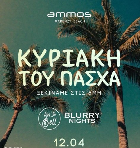 Blurry Nights hosts an Easter Sunday party at Ammos Beach Bar in Larnaca on April 12, 2026, with music by DJ Ntinos Konstantinou and Alex Soleas from 18:00. Tickets available. --- Scroll down for English version 👇 --- Η πιο αγαπημένη Κυριακή του χρόνου επιστρέφει — και η Λάρνακα ετοιμάζεται για μια ξεχωριστή βραδιά Κυριακής του Πάσχα στο Ammos Beach Bar. Το Blurry Nights διοργανώνει ένα από τα πιο αναμενόμενα events της χρονιάς, την Κυριακή 12 Απριλίου 2026, με άνοιγμα θυρών στις 18:00. Πίσω από τα decks οι DJ Ntinos Konstantinou και Alex Soleas. 🎟️ Εισιτήρια διαθέσιμα μέσω XO. 🗓️ Πρόγραμμα Κυριακή, 12 Απριλίου 2026 | Πόρτες 18:00 (Ammos Beach Bar, Λάρνακα) Τηλέφωνο/Κρατήσεις: 96955324 — 24828844 --- EN Blurry Nights returns for what they call their favourite Sunday of the year — an Easter Sunday party at Ammos Beach Bar in Larnaca, Cyprus on April 12, 2026. Doors open at 18:00, with music provided by DJ Ntinos Konstantinou and Alex Soleas. 🎟️ Tickets available via XO. 🗓️ Schedule Sunday, April 12, 2026 | Doors open 18:00 (Ammos Beach Bar, Larnaca) Phone/Reservations: 96955324 — 24828844 Explore more Nightlife & Parties → eventor.com.cy/events/category/nightlife---parties-128 --- ❓ FAQ Q: Who is playing music at the Blurry Nights Easter Sunday event? A: The music is provided by DJ Ntinos Konstantinou and Alex Soleas. Q: What time do doors open? A: Doors open at 18:00 on Sunday, April 12, 2026. Q: Where can I buy tickets? A: Tickets are available exclusively via XO at app.thexo.app/events/269. Q: Can I make a reservation by phone? A: Yes — call 96955324 or 24828844 for information and reservations.