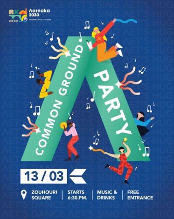 Celebrate in Larnaca this March 2026 at the Common Ground Party in Zouhouri Square with live music, city vibes and free entry for all. Scroll down for English version 👇 Το Λάρνακα 2030 διοργανώνει το Common Ground Party την Παρασκευή 13 Μαρτίου 2026, από τις 18:30 μέχρι αργά, στην Πλατεία Ζουχούρι. Μια ανοιχτή γιορτή για όλη την πόλη, γεμάτη μουσική, ρυθμό και θετική ενέργεια. 🎟️ Δωρεάν είσοδος. Το πρόγραμμα περιλαμβάνει αγαπημένα μουσικά σχήματα της Λάρνακας, σε ένα εορταστικό κλίμα που ενώνει κατοίκους και επισκέπτες. Η βραδιά είναι αφιερωμένη στον εορτασμό της κατάκτησης του τίτλου της Πολιτιστικής Πρωτεύουσας της Ευρώπης 2030, με χαμόγελα, χορό και ζωντανό παλμό στο κέντρο της πόλης. 🗓️ Πρόγραμμα Παρασκευή, 13 Μαρτίου 2026 | 18:30 (Πλατεία Ζουχούρι, Λάρνακα) EN This outdoor music party in Larnaca, Cyprus takes place on Friday, March 13, 2026 from 18:30 onwards at Zouhouri Square, as Larnaca 2030 hosts the Common Ground Party. 🎟️ Free entry. The celebration brings together the city with a vibrant lineup of local music acts, creating an evening full of rhythm, energy and shared joy. The event marks the celebration of Larnaca’s title as European Capital of Culture 2030, inviting everyone to sing, dance and celebrate together in the heart of the city. 🗓️ Schedule Friday, March 13, 2026 | 18:30 (Zouhouri Square, Larnaca) Explore more Festivals → eventor.com.cy/events/category/festivals-115 ❓ FAQ Q: Is there an entrance fee? A: No, entry is completely free. Q: Where does the event take place? A: At Zouhouri Square in Larnaca. Q: What time does the party start? A: The event starts at 18:30 and continues late into the evening. Q: What is the occasion? A: The party celebrates Larnaca’s title as European Capital of Culture 2030.