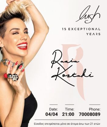 Ζήστε μια δυναμική βραδιά DJ με τη Rania Kostaki στο Lush Beach Bar στη Λάρνακα στις 4 Απριλίου 2026, στο πλαίσιο του εορτασμού 15 Exceptional Years του Lush με ρυθμό και μοναδική ατμόσφαιρα. Scroll down for English version 👇 Η Rania Kostaki έρχεται στο Lush Beach Bar στη Λάρνακα για μια ξεχωριστή βραδιά μουσικής και διασκέδασης το Σάββατο 4 Απριλίου 2026. Η εκδήλωση αποτελεί μέρος του εορτασμού των 15 Exceptional Years του Lush και υπόσχεται μια νύχτα γεμάτη ρυθμό, ενέργεια και έντονη ατμόσφαιρα. Η γνωστή DJ αναλαμβάνει τα decks από τις 21:00, δημιουργώντας ένα δυναμικό μουσικό σκηνικό που συνδυάζει χορευτικούς ρυθμούς και την ιδιαίτερη εμπειρία που χαρακτηρίζει τις βραδιές στο Lush. Η εκδήλωση απευθύνεται αποκλειστικά σε άτομα άνω των 21 ετών και αναμένεται να προσελκύσει λάτρεις της νυχτερινής ζωής που θέλουν να ζήσουν μια έντονη εμπειρία μουσικής και διασκέδασης σε ένα από τα πιο γνωστά beach bars της Λάρνακας. 🗓️ Πρόγραμμα Σάββατο, 4 Απριλίου 2026 | 21:00 Lush Beach Bar, Λάρνακα Τηλέφωνο κρατήσεων: 70008089 EN Rania Kostaki takes over the decks at Lush Beach Bar in Larnaca for a special DJ night on Saturday, 4 April 2026. The event is part of the venue’s celebration of 15 Exceptional Years, promising a night full of rhythm, atmosphere and the signature Lush energy. The well-known DJ starts her set at 21:00, delivering an energetic music experience designed for nightlife lovers who want to enjoy a vibrant evening by the sea. The event is strictly for guests aged 21 and over. 🗓️ Schedule Saturday, April 4, 2026 | 21:00 Lush Beach Bar, Larnaca Reservations phone: 70008089 Explore more Nightlife & Parties → eventor.com.cy/events/category/nightlife---parties-128 ❓ FAQ Q: What time does the event start? A: The DJ set begins at 21:00 on Saturday, 4 April 2026. Q: Where is the event taking place? A: The event will take place at Lush Beach Bar in Larnaca. Q: Is there an age restriction? A: Yes, entry is strictly for guests aged 21 and over. Q: How can I make a reservation? A: Reservations can be made by calling 70008089.