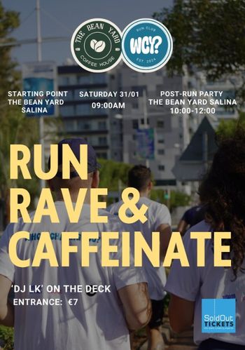 Join a social run and morning party in Larnaca this January 2026, bringing together run clubs, music, and great coffee in a community-driven outdoor event. Scroll down for English version 👇 Δεν έχει σημασία ποιος προηγείται ή ποιος ακολουθεί — σημασία έχει το μαζί. Το RUN, RAVE & CAFFEINATE στη Λάρνακα είναι ένα διαφορετικό after party που ξεκινά με πρωινό τρέξιμο και συνεχίζεται με καφέ και χαλαρή διάθεση. Run clubs από όλο το νησί συναντιούνται για ένα κοινωνικό τρέξιμο, με στόχο τη σύνδεση και την ενέργεια της κοινότητας. Η εμπειρία ολοκληρώνεται στο The Bean Yard, στον χώρο του Salina Park, όπου οι συμμετέχοντες απολαμβάνουν το πρωινό πάρτι και τον καφέ τους μετά τον τερματισμό. Το εισιτήριο περιλαμβάνει συμμετοχή στο τρέξιμο και έναν καφέ, ενώ η εκδήλωση απευθύνεται σε όλες τις ηλικίες. 🎟️ Εισιτήρια από €7. 🗓️ Πρόγραμμα Σάββατο, 31 Ιανουαρίου 2026 | 09:00 (The Bean Yard – Salina Park, Λάρνακα) Για περισσότερες πληροφορίες και εγγραφές, επικοινωνήστε απευθείας με τους διοργανωτές. EN This outdoor sports event in Larnaca, Cyprus brings together running, music, and coffee in a relaxed and social atmosphere. RUN, RAVE & CAFFEINATE starts with a morning group run and flows naturally into a casual after-run party, welcoming runners of all levels to enjoy the experience together. Hosted at The Bean Yard in Salina Park, the event includes participation in the social run and a coffee after the finish. Open to all ages, the initiative aims to connect the local running community and create a shared, energising start to the day. 🎟️ Ticket prices start from €7. 🗓️ Schedule Saturday, January 31, 2026 | 09:00 (The Bean Yard – Salina Park, Larnaca) For more information and registration details, please contact the organiser directly. Explore more Sports & Fitness → eventor.com.cy/events/category/sports---fitness-111 ❓ FAQ Q: Do I need to be an experienced runner to join? A: No, this is a social run designed for all fitness levels. Q: What is included in the ticket? A: The ticket includes participation in the run and one coffee after finishing. Q: Is there an age restriction? A: The event is open to all ages. Q: In which languages will the event take place? A: Greek and English.