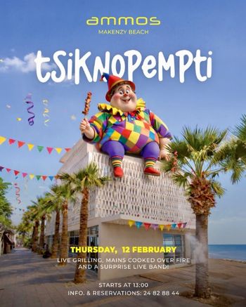 Celebrate Tsiknopempti at Ammos Makenzie Beach with live grilling, a surprise live band, and carnival vibes right by the sea. Scroll down for English version 👇 Η Τσικνοπέμπτη γιορτάζεται the AMMOS way στο Ammos Makenzie Beach! Την Πέμπτη 12 Φεβρουαρίου, από τις 13:00, το Ammos στήνει μια ολοήμερη γιορτή δίπλα στη θάλασσα με ζωντανό ψήσιμο, κυρίως πιάτα μαγειρεμένα στη φωτιά, surprise live band και καρναβαλίστικη τρέλα σε καλοκαιρινό σκηνικό. Η εμπειρία συνδυάζει το παραδοσιακό πνεύμα της ημέρας με την ανεπιτήδευτη ενέργεια του Makenzie Beach. Τα τραπέζια γεμίζουν γρήγορα, γι’ αυτό συνιστάται έγκαιρη κράτηση. 🗓️ Πρόγραμμα Πέμπτη, 12 Φεβρουαρίου | Έναρξη: 13:00 (Ammos Makenzie Beach) 📞 Κρατήσεις: 24 82 88 44 EN Celebrate Tsiknopempti the AMMOS way at Ammos Makenzie Beach on Thursday, February 12, starting from 13:00. Expect live grilling, mains cooked over open fire, a surprise live band, and full-on carnival vibes by the sea. This beachside celebration blends tradition with laid-back coastal energy. Tables fill fast, so reservations are highly recommended. 🗓️ Schedule Thursday, February 12 | Starts at 13:00 (Ammos Makenzie Beach) 📞 Reservations: 24 82 88 44 Explore more Carnival Events → eventor.com.cy/events/category/carnival-127 ❓ FAQ Q: What time does the event start? A: The celebration starts at 13:00. Q: What’s included? A: Live grilling, mains cooked over fire, and a surprise live band in a carnival atmosphere. Q: Do I need a reservation? A: Yes, reservations are recommended as tables fill quickly. Q: Where is Ammos located? A: At Makenzie Beach, Larnaca.