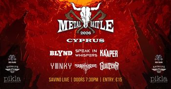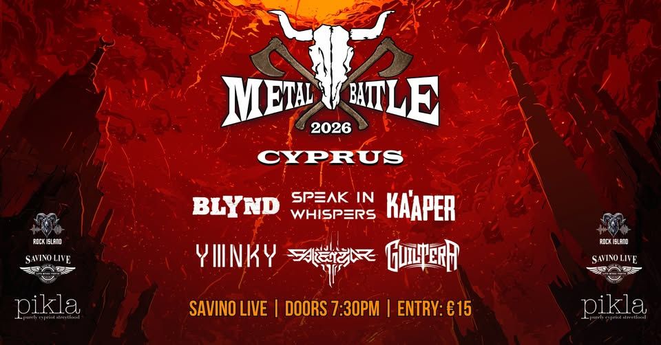 Experience Wacken Metal Battle Cyprus in Larnaca on January 17, 2026, as six local bands compete live for a place in the Greece–Cyprus final. Scroll down for English version 👇 Η Κύπρος συμμετέχει για πρώτη φορά επίσημα στο Wacken Metal Battle, εντασσόμενη σε κοινή ανταγωνιστική περιφέρεια με την Ελλάδα. Το live showcase πραγματοποιείται στο Savino Live και φέρνει στη σκηνή έξι κυπριακά metal συγκροτήματα, επιλεγμένα μέσω της επίσημης διαδικασίας του θεσμού. Κάθε μπάντα παρουσιάζει ένα set διάρκειας 30 λεπτών μπροστά σε διεθνή κριτική επιτροπή. Στο τέλος της βραδιάς, δύο συγκροτήματα θα επιλεγούν για να εκπροσωπήσουν την Κύπρο στον τελικό Ελλάδας–Κύπρου, που θα πραγματοποιηθεί στην Αθήνα στις 5 Απριλίου 2026. Ο νικητής του τελικού εξασφαλίζει συμμετοχή στο Wacken Open Air. Τη διοργάνωση έχουν τα Rock Island Events και Savino Live. Συμμετέχοντα συγκροτήματα (αλφαβητικά): Blynd Guiltera Ka'aper Salienzor Speak in Whispers YMNKY 🎟️ Εισιτήρια από €15. 🗓️ Πρόγραμμα Σάββατο, 17 Ιανουαρίου 2026 | Λάρνακα (Savino Live) Website/Additional info: tinyurl.com/32nawjat EN Cyprus officially joins the Wacken Metal Battle for the first time with a national live showcase in Larnaca, Cyprus. Hosted at Savino Live, the event features six Cypriot metal bands selected through the official Wacken Metal Battle application process. Each band will perform a 30-minute set in front of an international judging panel. By the end of the night, two bands will be chosen to represent Cyprus at the Greece–Cyprus Regional Final in Athens on April 5, 2026. The winner of that final secures a slot at Wacken Open Air, making this a key moment for the local metal scene. Performing bands (alphabetical): Blynd Guiltera Ka'aper Salienzor Speak in Whispers YMNKY 🎟️ Ticket prices start from €15. 🗓️ Schedule Saturday, January 17, 2026 | Larnaca (Savino Live) Website/Additional info: tinyurl.com/32nawjat Explore more Festivals → eventor.com.cy/events/category/festivals-115 ❓ FAQ Q: What is Wacken Metal Battle Cyprus? A: It is the official Cyprus selection event for the international Wacken Metal Battle competition. Q: How many bands are performing? A: Six Cypriot metal bands perform live during the event. Q: What do the winning bands receive? A: Two bands advance to the Greece–Cyprus Regional Final in Athens, with the winner earning a slot at Wacken Open Air. Q: Where does the event take place? A: The live showcase takes place at Savino Live in Larnaca.