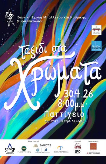 Χορευτική παράσταση με παιδιά από 3 ετών στο Παττίχειο Θέατρο Λεμεσού, Πέμπτη 30 Απριλίου 2026. Μουσική, κίνηση και έκφραση. Εισιτήρια €15. --- Scroll down for English version 👇 --- Την Πέμπτη 30 Απριλίου 2026 στις 20:00, το Παττίχειο Θέατρο της Λεμεσού υποδέχεται μια πολύχρωμη χορευτική παράσταση όπου παιδιά από τριών ετών και άνω μεταφέρουν το κοινό σε ένα ταξίδι γεμάτο κίνηση, συναίσθημα και φαντασία. Κάθε χορός αντιστοιχεί σε μια απόχρωση, κάθε σκηνή σε μια στιγμή έκφρασης όπου μουσική και ρυθμός συναντιούνται. 🎟️ Εισιτήρια από €15. Η παράσταση διαρκεί 1 ώρα και 45 λεπτά και απευθύνεται σε θεατές όλων των ηλικιών — μια βραδιά που γιορτάζει τη δημιουργικότητα και την έκφραση μέσα από τον χορό. 🗓️ Πρόγραμμα Πέμπτη, 30 Απριλίου 2026 | 20:00 (Παττίχειο Θέατρο, Λεμεσός) Για περισσότερες πληροφορίες και εισιτήρια, επικοινωνήστε απευθείας με τους διοργανωτές. --- EN This dance performance in Limassol, Cyprus invites audiences of all ages on a colourful journey of movement and emotion at the Pattichion Theatre on Thursday, April 30, 2026 at 20:00. Children aged three and above take to the stage in a vibrant show where each dance represents a different shade and each scene a moment of pure creative expression. 🎟️ Ticket prices start from €15. Music, imagination, and rhythm come together across a programme that runs for 1 hour and 45 minutes, making it an ideal evening for families and dance enthusiasts alike. 🗓️ Schedule Thursday, April 30, 2026 | 20:00 (Pattichion Theatre, Limassol) For more information and ticketing details, please contact the organiser directly. Explore more Family & Kids → eventor.com.cy/events/category/family---kids-112 --- ❓ FAQ Q: When and where does the performance take place? A: The performance takes place on Thursday, April 30, 2026 at 20:00 at the Pattichion Theatre in Limassol. Q: What is the ticket price? A: Ticket prices are €15. Q: Is the show suitable for young children? A: Yes, children from the age of three and above are welcome, and the show is suitable for all ages. Q: How long is the performance? A: The running time is 1 hour and 45 minutes.