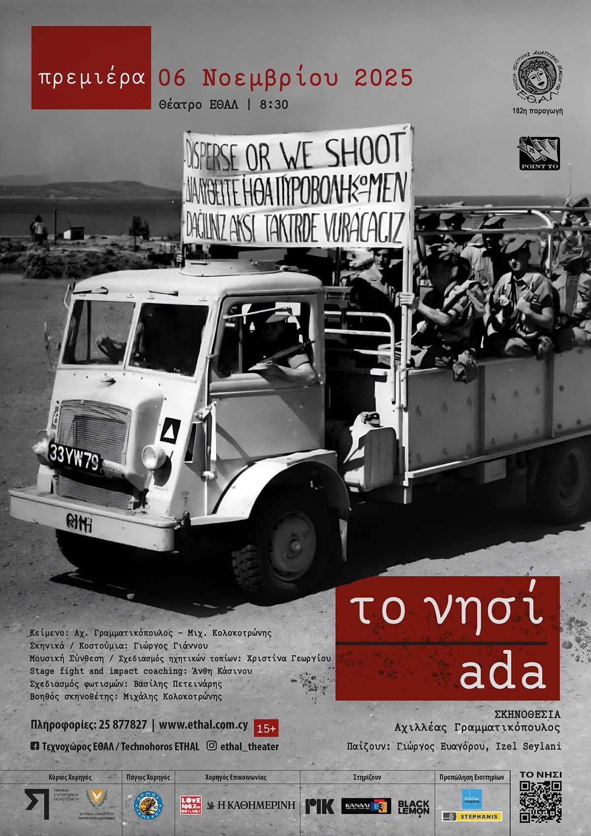The Island by ETHAL at Limassol and Nicosia (Nov 6–Dec 1, 2025). A powerful Cypriot play exploring history, memory, and reconciliation. Scroll down for English version ↓ Η νέα παραγωγή της ΕΘΑΛ σε συνεργασία με το Point To Contemporary Theater φωτίζει πτυχές της κυπριακής ιστορίας, της συλλογικής μνήμης και της πολιτιστικής ταυτότητας μέσα από μια πρωτότυπη θεατρική προσέγγιση. Το έργο θα παρουσιαστεί από τις 6 Νοεμβρίου έως την 1 Δεκεμβρίου 2025 στη Λεμεσό και τη Λευκωσία. 🎟️ Εισιτήρια από €7. Με έμπνευση από το έργο “The Island” του Athol Fugard, η παράσταση αναδεικνύει το συλλογικό τραύμα και την πολυπλοκότητα της κυπριακής ταυτότητας, θέτοντας ερωτήματα για τη συμφιλίωση, τη μνήμη και τη συνύπαρξη. Μέσα από την εναλλαγή δύο αντίθετων φωνών, το κοινό βιώνει ένα βαθιά ανθρώπινο θέατρο με κοινωνικό και συναισθηματικό βάθος. Η ΕΘΑΛ εγκαινιάζει με αυτή την παραγωγή τη θεματική της για τη θεατρική περίοδο 2025–2026, με άξονα τη γλώσσα, τον διάλογο και την πολυπολιτισμικότητα του νησιού. Η διάρκεια της παράστασης είναι 90 λεπτά και είναι κατάλληλη για άτομα άνω των 15 ετών. 🗓️ Πρόγραμμα Πέμπτη, 6 Νοεμβρίου 2025 | 20:30 | Θέατρο ΕΘΑΛ, Λεμεσός Παρασκευή, 7 Νοεμβρίου 2025 | 20:30 | Θέατρο ΕΘΑΛ, Λεμεσός Κυριακή, 9 Νοεμβρίου 2025 | 18:30 | Θέατρο ΕΘΑΛ, Λεμεσός Πέμπτη, 13 Νοεμβρίου 2025 | 20:30 | WhereHaus 612, Λευκωσία Παρασκευή, 14 Νοεμβρίου 2025 | 20:30 | WhereHaus 612, Λευκωσία Κυριακή, 16 Νοεμβρίου 2025 | 18:30 | WhereHaus 612, Λευκωσία Πέμπτη, 20 Νοεμβρίου 2025 | 20:30 | WhereHaus 612, Λευκωσία Παρασκευή, 21 Νοεμβρίου 2025 | 20:30 | WhereHaus 612, Λευκωσία Κυριακή, 23 Νοεμβρίου 2025 | 18:30 | WhereHaus 612, Λευκωσία Δευτέρα, 24 Νοεμβρίου 2025 | 20:30 | WhereHaus 612, Λευκωσία Πέμπτη, 27 Νοεμβρίου 2025 | 20:30 | WhereHaus 612, Λευκωσία Παρασκευή, 28 Νοεμβρίου 2025 | 20:30 | WhereHaus 612, Λευκωσία Κυριακή, 30 Νοεμβρίου 2025 | 18:30 | WhereHaus 612, Λευκωσία Δευτέρα, 1 Δεκεμβρίου 2025 | 20:30 | WhereHaus 612, Λευκωσία EN The new production by ETHAL, in collaboration with Point To Contemporary Theater, sheds light on Cyprus’ shared history, collective memory, and identity through a powerful theatrical experience. The play runs from November 6 to December 1, 2025, in Limassol and Nicosia. 🎟️ Ticket prices start from €7. Inspired by Athol Fugard’s “The Island”, this production explores trauma and reconciliation through two opposing voices that echo Cyprus’ divided past and collective hope. With research-based storytelling and strong performances, it brings together emotion, reflection, and dialogue. ETHAL opens its 2025–2026 season with this piece, highlighting themes of language, communication, and multicultural identity. The performance lasts 90 minutes and is suitable for audiences aged 15 and over. 🗓️ Schedule Thursday, November 6, 2025 | 20:30 | ETHAL Theatre, Limassol Friday, November 7, 2025 | 20:30 | ETHAL Theatre, Limassol Sunday, November 9, 2025 | 18:30 | ETHAL Theatre, Limassol Thursday, November 13, 2025 | 20:30 | WhereHaus 612, Nicosia Friday, November 14, 2025 | 20:30 | WhereHaus 612, Nicosia Sunday, November 16, 2025 | 18:30 | WhereHaus 612, Nicosia Thursday, November 20, 2025 | 20:30 | WhereHaus 612, Nicosia Friday, November 21, 2025 | 20:30 | WhereHaus 612, Nicosia Sunday, November 23, 2025 | 18:30 | WhereHaus 612, Nicosia Monday, November 24, 2025 | 20:30 | WhereHaus 612, Nicosia Thursday, November 27, 2025 | 20:30 | WhereHaus 612, Nicosia Friday, November 28, 2025 | 20:30 | WhereHaus 612, Nicosia Sunday, November 30, 2025 | 18:30 | WhereHaus 612, Nicosia Monday, December 1, 2025 | 20:30 | WhereHaus 612, Nicosia Explore more Theatre & Cinema → eventor.com.cy/events/category/theatre---cinema-123 ❓ FAQ Q: What are the event dates? A: November 6 to December 1, 2025. Q: Is it free to attend? A: No, tickets start at €7. Q: Where does it take place? A: ETHAL Theatre, Limassol, and WhereHaus 612, Nicosia, Cyprus. Q: What is the language of the performance? A: Greek.