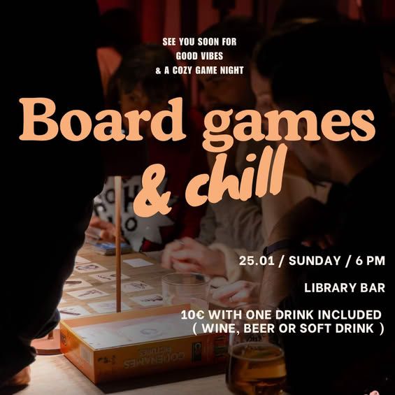 Enjoy a relaxed board game night with drinks, laughs and strategy at Library Bar this January. €10 entry includes one drink. Scroll down for English version 👇 Μια χαλαρή αλλά γεμάτη ενέργεια βραδιά επιτραπέζιων παιχνιδιών έρχεται την Κυριακή 25 Ιανουαρίου, ιδανική για όσους αγαπούν το παιχνίδι και την κοινωνική αλληλεπίδραση. Το All Aboard Games μετατρέπει το Library Bar σε σημείο συνάντησης για γέλιο, στρατηγική και καλή παρέα, σε ένα περιβάλλον φιλικό τόσο για αρχάριους όσο και για πιο έμπειρους παίκτες. Η συμμετοχή περιλαμβάνει ένα ποτό της επιλογής σας (μπίρα, κρασί ή αναψυκτικό), ενώ η φιλοσοφία της βραδιάς βασίζεται στη γνωριμία νέων ανθρώπων μέσα από το παιχνίδι. Ελάτε με φίλους ή μόνοι σας και αφήστε τα παιχνίδια να «σπάσουν τον πάγο». 🎲🍷 🎟️ Εισιτήρια από €10. 🗓️ Πρόγραμμα Κυριακή, 25 Ιανουαρίου | 18:00 (Library Bar) Για περισσότερες πληροφορίες και εγγραφές, επικοινωνήστε απευθείας με τους διοργανωτές. EN This board game social night takes place on Sunday, January 25, offering a relaxed way to connect through games, strategy, and conversation. Hosted at Library Bar, the event welcomes both casual players and competitive minds, creating an inclusive table for everyone. Entry includes one drink of your choice—beer, wine, or a soft drink—making it easy to settle in and enjoy the evening. Whether you come with friends or solo, the focus is on meeting people, sharing laughs, and letting the games lead the experience. 🎲🍷 🎟️ Ticket prices start from €10. 🗓️ Schedule Sunday, January 25 | 18:00 (Library Bar) For more information and registration details, please contact the organiser directly. Explore more Food & Drinks → eventor.com.cy/events/category/food---drink-events-165 ❓ FAQ Q: Do I need to be experienced with board games to join? A: No, the event is open to both casual and experienced players. Q: What does the entry fee include? A: The €10 entry includes one drink of your choice. Q: What time does the event start? A: The game night starts at 18:00. Q: Can I come alone? A: Yes, solo guests are welcome and encouraged.