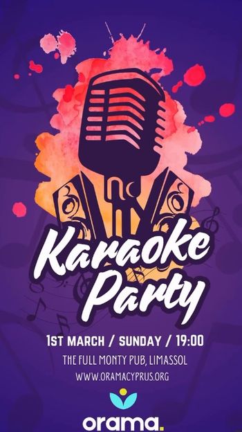 Karaoke Party στη Λεμεσό την 1η Μαρτίου 2026, μια κεφάτη βραδιά τραγουδιού με φαγητό, ποτό και παρέα. Scroll down for English version 👇 Το Karaoke Party έρχεται για μια βραδιά γεμάτη μουσική, γέλιο και καλή διάθεση στη Λεμεσό. Ετοιμάσου να ανέβεις στη σκηνή, να πιάσεις το μικρόφωνο και να τραγουδήσεις τα αγαπημένα σου hits, σε ένα χαλαρό και φιλικό περιβάλλον που ενθαρρύνει τη συμμετοχή και τη διασκέδαση. Η εκδήλωση φιλοξενείται στο The Full Monty Pub και συνδυάζει karaoke με φαγητό και ποτό, δημιουργώντας την ιδανική ατμόσφαιρα για παρέες. Φέρε φίλους, φόρα το χαμόγελό σου και μπες στο vibe μιας από τις πιο κεφάτες μουσικές βραδιές της πόλης. 🗓️ Πρόγραμμα Κυριακή, 1 Μαρτίου 2026 | 19:00 (The Full Monty Pub, Λεμεσός) Εγγραφή: tinyurl.com/yvfbyb58 Instagram: @orama.cyprus EN The Karaoke Party lands in Limassol for a fun-filled evening of music, laughs, and sing-along moments. Step on stage, grab the mic, and perform your favourite hits in a friendly, high-energy atmosphere designed for groups and good times. Hosted at The Full Monty Pub, the night blends karaoke with food and drinks, making it perfect for friends looking to unwind and connect through music. Bring your crew, warm up your voice, and enjoy one of Limassol’s liveliest karaoke nights. 🗓️ Schedule Sunday, March 1, 2026 | 19:00 (The Full Monty Pub, Limassol) Registration: tinyurl.com/yvfbyb58 Instagram: @orama.cyprus Explore more Nightlife & Parties → eventor.com.cy/events/category/nightlife---parties-128 ❓ FAQ Q: Do I need to register in advance? A: Yes, registration is available via the provided link. Q: Where does the karaoke party take place? A: At The Full Monty Pub in Limassol. Q: What time does the event start? A: The event starts at 19:00. Q: Is the event suitable for groups? A: Yes, it’s ideal for friends and social groups.