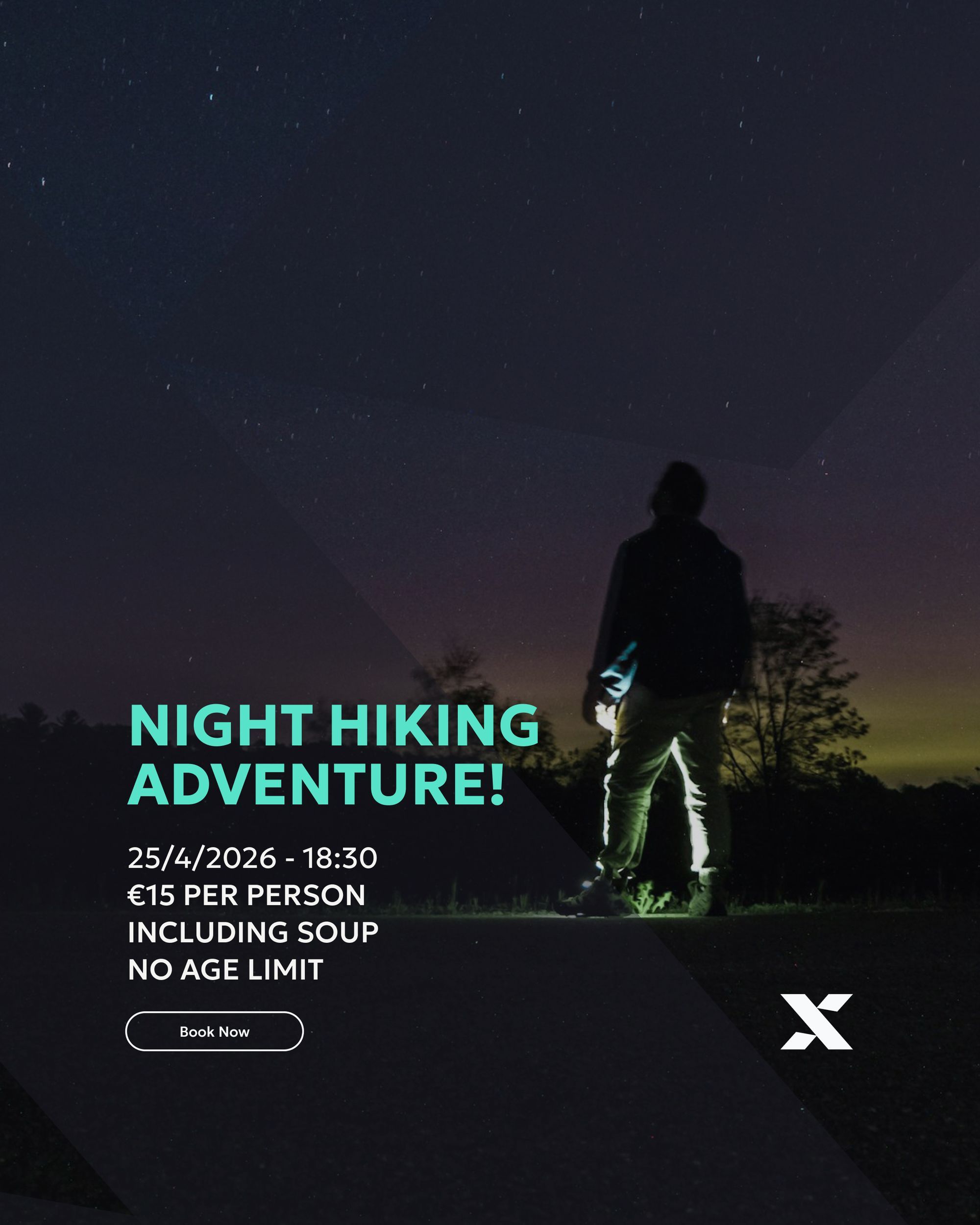 Night Hiking Adventure near Moniatis — sunset hike with soup, monastery visit and waterfall, April 2026. Tickets €15. Tickets available. --- Scroll down for English version 👇 --- Η Exaskisi διοργανώνει μια νυχτερινή πεζοπορία κοντά στον Μονιάτη, κατά μήκος ενός γραφικού ορεινού μονοπατιού με συνολική ανύψωση περίπου 280 μέτρων. Η διαδρομή ξεκινά πριν τη δύση του ηλίου και συνεχίζεται μέχρι το βράδυ, συνδυάζοντας φύση, ελαφριά περιπέτεια και μια ζεστή στάση στη φύση. 🎟️ Εισιτήρια από €15 (περιλαμβάνεται σούπα). Κατά τη διαδρομή, οι συμμετέχοντες θα περάσουν από πανοραμικά σημεία θέας, θα επισκεφθούν την ιστορική Ιερά Μονή Τιμίου Προδρόμου Μέσα Ποταμού, θα απολαύσουν ζεστή σούπα στο Picnic Site Μέσα Ποταμού και θα επισκεφθούν τον καταρράκτη Μέσα Ποταμού. Βαθμός δυσκολίας: εύκολο. Χωρίς ηλικιακό περιορισμό. Διάρκεια: 3,5–4 ώρες. Απαραίτητος εξοπλισμός: φακός κεφαλής, αδιάβροχο ή ζεστά ρούχα, στιβαρά παπούτσια πεζοπορίας, νερό και ελαφρύ σνακ. Μετά τη δύση η θερμοκρασία πέφτει γρήγορα. 🗓️ Πρόγραμμα Σάββατο, 25 Απριλίου 2026 | 18:30 (Μονιάτης) ❓ Συχνές Ερωτήσεις Ε: Χρειάζεται προηγούμενη εμπειρία πεζοπορίας; Α: Όχι, η διαδρομή είναι εύκολου επιπέδου και ανοιχτή σε όλες τις ηλικίες. Ε: Τι περιλαμβάνει η τιμή; Α: Η συμμετοχή στην πεζοπορία και ένα μπολ ζεστή σούπα στη στάση στο Μέσα Ποταμού. Ε: Οι θέσεις είναι περιορισμένες; Α: Ναι, κλείστε θέση έγκαιρα μέσω της ιστοσελίδας. --- EN Exaskisi organises a Night Hiking Adventure near Moniatis in Limassol, Cyprus, along a scenic mountain trail with a total elevation gain of about 280 metres. The hike begins before sunset and continues into the evening, combining nature, light adventure, and a cosy outdoor break. 🎟️ Ticket prices start from €15 (includes soup). Along the way, hikers will pass beautiful panoramic viewpoints, visit the historic Holy Monastery of Timios Prodromos Mesa Potamou, enjoy a warm bowl of soup at the Mesa Potamos Picnic Site, and visit the nearby Mesa Potamos Waterfall. Difficulty level: easy. No age limit. Duration: 3.5–4 hours. Please come prepared with a headlamp or flashlight, waterproof jacket or warm layers, sturdy hiking boots, water, and light snacks. After sunset the temperature drops quickly. 🗓️ Schedule Saturday, April 25, 2026 | 18:30 (Moniatis) ❓ FAQ Q: Do I need hiking experience? A: No, this is an easy-level hike open to all ages. Q: What does the price include? A: Participation in the hike and a warm bowl of soup at the Mesa Potamos stop. Q: Are spots limited? A: Yes, book early through the website to secure your place. Explore more Outdoor & Adventure → eventor.com.cy/events/category/outdoor---adventure-125