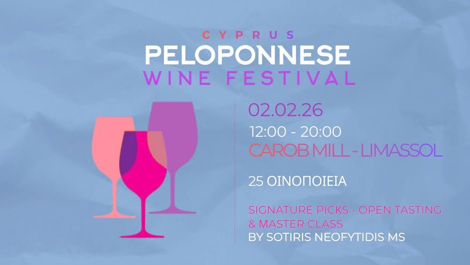 Φεστιβάλ ελληνικού κρασιού στη Λεμεσό — 2 Φεβρουαρίου 2026. Οίνοι Πελοποννήσου, γευσιγνωσίες και masterclass. Εισιτήρια διαθέσιμα. Scroll down for English version 👇 Το Cyprus Peloponnese Wine Festival επιστρέφει δυναμικά στη Λεμεσό, φέρνοντας στο προσκήνιο τη σύγχρονη ταυτότητα και τον δυναμικό χαρακτήρα των κρασιών της Πελοποννήσου. Τη Δευτέρα 2 Φεβρουαρίου 2026, στο Carob Mill, 25 επιλεγμένα οινοποιεία από τον μεγαλύτερο αμπελώνα της Ελλάδας συναντούν επαγγελματίες του κρασιού, της φιλοξενίας, δημοσιογράφους και οινόφιλους. Καθ’ όλη τη διάρκεια της ημέρας, οι επισκέπτες θα δοκιμάσουν ΠΟΠ και ΠΓΕ οίνους από διαφορετικές περιοχές της Πελοποννήσου, εμβληματικές ελληνικές ποικιλίες, καθώς και σύγχρονες οινοποιητικές εκφράσεις που αναδεικνύουν το terroir, το υψόμετρο και τα μικροκλίματα κάθε τόπου. 🍷 Στο πλαίσιο της διοργάνωσης, θα πραγματοποιηθεί masterclass από τον Σωτήρη Νεοφυτίδη, Master Sommelier (MS), τον μοναδικό Master Sommelier στην Κύπρο. Το masterclass απευθύνεται αποκλειστικά σε επαγγελματίες και θα διεξαχθεί κατόπιν πρόσκλησης, προσφέροντας εις βάθος προσέγγιση στους οίνους της Πελοποννήσου μέσα από διεθνή οπτική. Παράλληλα, από τις 14:00, το κοινό μπορεί να συμμετάσχει στο “Signature Picks – Open Tasting by Sotiris Neofytidis MS”, μια ελεύθερη γευσιγνωσία με επιλεγμένες ετικέτες που εκφράζουν τον χαρακτήρα τόσο των παραγωγών όσο και του πελοποννησιακού αμπελώνα, με καθοδήγηση επαγγελματιών sommelier. 🎟️ Εισιτήρια από €10 (προπώληση) / €12 (στην είσοδο). 🗓️ Πρόγραμμα Δευτέρα, 2 Φεβρουαρίου 2026 | 12:00–20:00 (Carob Mill Restaurants, Λεμεσός) Παράλληλη δράση “Signature Picks”: 14:00–20:00 Χώρος: Carob Mill Restaurants, Λεμεσός EN This wine festival in Limassol, Cyprus, brings together the modern identity and dynamic character of Peloponnese wines on Monday, February 2, 2026, at Carob Mill. Twenty-five selected wineries from Greece’s largest vineyard welcome wine professionals, hospitality representatives, journalists, and wine lovers for a full-day celebration of quality and terroir. Throughout the day, visitors can taste PDO and PGI wines from across the Peloponnese, explore iconic Greek grape varieties, and discover contemporary winemaking styles shaped by altitude, microclimate, and regional character. 🍷 A highlight of the event is an invitation-only masterclass led by Sotiris Neofytidis MS, the only Master Sommelier in Cyprus, offering professionals an in-depth exploration of Peloponnese wines through an international lens. From 14:00, the “Signature Picks – Open Tasting by Sotiris Neofytidis MS” opens to the public, featuring curated labels in a free-tasting format guided by professional sommeliers. 🎟️ Ticket prices start from €10 (presale) / €12 (standard). 🗓️ Schedule Monday, February 2, 2026 | 12:00–20:00 (Carob Mill Restaurants, Limassol) Parallel activity “Signature Picks”: 14:00–20:00 Venue: Carob Mill Restaurants, Limassol Explore more Food & Drinks → eventor.com.cy/events/category/food---drink-events-165 ❓ FAQ Q: Who is the festival for? A: Wine professionals, hospitality representatives, journalists, and wine lovers. Q: What wines will be available for tasting? A: PDO and PGI wines, Greek grape varieties, and modern expressions from the Peloponnese. Q: Is the masterclass open to everyone? A: No, the masterclass is by invitation only and addressed exclusively to professionals. Q: Where can I buy tickets? A: Tickets are available online in advance and at the entrance, subject to availability.
