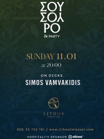SouSouro The Party returns to Limassol for a Sunday night at Lithos, with DJ Simos Vamvakidis and a high-energy party atmosphere. Scroll down for English version 👇 Τελικά, όλοι κρύβουμε μια ΣουΣουράδα μέσα μας! Το SouSouro The Party συνεχίζει δυναμικά στον μοναδικό χώρο του Lithos, έναν χώρο που έχει συνδεθεί με αυθεντικές βραδιές διασκέδασης και έντονη ενέργεια. Την Κυριακή 11 Ιανουαρίου, τα decks αναλαμβάνει ο Σίμος Βαμβακίδης, δημιουργώντας το soundtrack μιας βραδιάς όπου «όλη η πόλη γίνεται μια αγκαλιά». Οι πόρτες ανοίγουν στις 20:00, για μια ακόμη SouSouro εμπειρία γεμάτη ρυθμό, παλμό και κοινή διάθεση για διασκέδαση. 🗓️ Πρόγραμμα Κυριακή, 11 Ιανουαρίου | 20:00 (Lithos, Λεμεσός) Κρατήσεις: 25 762 761 Χορηγός φιλοξενίας: Alinea Limassol EN This party event in Limassol, Cyprus brings SouSouro The Party back to the distinctive setting of Lithos for another vibrant Sunday night. Known for its expressive and inclusive atmosphere, the party invites everyone to let loose and be part of the moment. On Sunday, January 11, Simos Vamvakidis takes over the decks, setting the mood for a night where the whole city comes together. Doors open at 20:00 for a high-energy experience driven by music and shared vibes. 🗓️ Schedule Sunday, January 11 | 20:00 (Lithos, Limassol) Reservations: 25 762 761 Hospitality sponsor: Alinea Limassol Explore more Nightlife & Parties → eventor.com.cy/events/category/nightlife---parties-128 ❓ FAQ Q: Where does the event take place? A: At Lithos in Limassol. Q: What time do doors open? A: Doors open at 20:00. Q: Who is playing music at the event? A: DJ Simos Vamvakidis. Q: How can I make a reservation? A: By calling 25 762 761