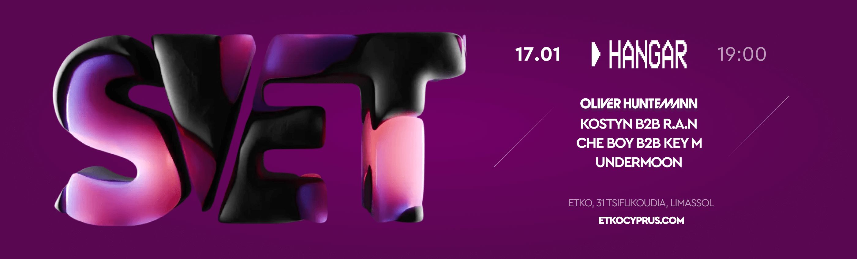 Techno night in Limassol, Cyprus — January 17. Oliver Huntemann headlines S.V.E.T. at ETKO Hangar. Tickets available. Scroll down for English version ⯆ Το S.V.E.T. φέρνει στη Λεμεσό ένα οπτικά και ηχητικά καθηλωτικό techno event, σε έναν από τους πιο industrial χώρους της Κύπρου. Το Σάββατο 17 Ιανουαρίου, το Hangar του ETKO μετατρέπεται σε σκηνή έντονης ενέργειας, κίνησης και σύγχρονου club culture. 🎟️ Εισιτήρια από €20. Headliner της βραδιάς είναι ο Oliver Huntemann, ένας αληθινός θρύλος της techno σκηνής, γνωστός για τον καθαρό, minimal ήχο του και τα δυναμικά sets που παρασύρουν το κοινό στον ρυθμό. Μαζί του, οι Kostyn & R.A.N παρουσιάζουν ένα ισχυρό b2b set με εντυπωσιακό visual show, ενώ οι Che Boy & Key M εμφανίζονται με ειδικά διαμορφωμένο set αποκλειστικά για τη βραδιά ⚡ Το S.V.E.T. δεν είναι απλώς ένα party, αλλά μια ολοκληρωμένη εμπειρία εικόνας, ήχου και ατμόσφαιρας, ιδανική για όσους αναζητούν σύγχρονο techno σε μεγάλης κλίμακας industrial περιβάλλον. 🗓️ Πρόγραμμα Σάββατο, 17 Ιανουαρίου | 19:00 (ETKO Hangar, Λεμεσός) EN A powerful techno event in Limassol, Cyprus, S.V.E.T. lands at the industrial Hangar ETKO on January 17, delivering a night driven by sound, visuals, and movement. Known for its immersive production, S.V.E.T. creates a high-impact club experience in a conceptual space. 🎟️ Ticket prices start from €20. Headlining the night is techno legend Oliver Huntemann, celebrated for his clean, minimal sound and explosive energy behind the decks. Joining him are Kostyn & R.A.N with a strong back-to-back set enhanced by a full visual show, plus Che Boy & Key M performing a special set created exclusively for this event 🔊 Expect a night that blends underground techno culture with large-scale production — a space to move, connect, and create a new story together on the dancefloor. 🗓️ Schedule Saturday, January 17 | 19:00 (ETKO Hangar, Limassol) Explore more Nightlife & Parties → eventor.com.cy/events/category/nightlife---parties-128 ❓ FAQ Q: What type of music will be played? A: Techno, with a focus on minimal and driving club sounds. Q: Where does the event take place? A: At the Hangar venue inside ETKO, Limassol. Q: Are there different ticket options? A: Yes, General Admission, VIP Zone, and VIP Tables are available. Q: Who is the headliner? A: Oliver Huntemann.