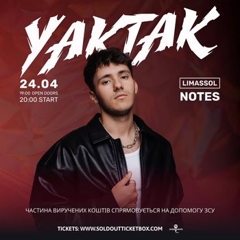 Live pop concert in Limassol, Cyprus — April 24, 2026. YAKTAK performs hits and new tracks at Notes Live Music. Tickets available. Scroll down for English version 👇 Ο YAKTAK, ένας από τους πιο δημοφιλείς καλλιτέχνες της νέας γενιάς, έρχεται στη Λεμεσό για μια συναυλία που υπόσχεται έντονα συναισθήματα και συλλογική εμπειρία. Την Παρασκευή 24 Απριλίου 2026, η σκηνή του Notes Live Music μετατρέπεται σε χώρο όπου η μουσική ενώνει καρδιές και φωνές. Τα τραγούδια του YAKTAK έχουν γίνει αναπόσπαστο μέρος της καθημερινότητας μιας ολόκληρης γενιάς — από ακουστικά και playlists μέχρι μεγάλες σκηνές και φεστιβάλ. Επιτυχίες όπως τα «Endorphin», «Nebo», «Pohidna» και «Unochі» εκφράζουν ειλικρίνεια, ένταση και αυθεντικό συναίσθημα, δημιουργώντας στιγμές που μένουν αξέχαστες. 🎶 Η συναυλία θα περιλαμβάνει πλήρες live πρόγραμμα με αγαπημένα hits αλλά και νέα κομμάτια που έχουν ήδη κατακτήσει τα charts. Η ενέργεια του κοινού, το ομαδικό τραγούδι από τις πρώτες νότες και η ατμόσφαιρα που δημιουργείται δύσκολα περιγράφονται με λόγια. Μέρος των εσόδων θα διατεθεί για τη στήριξη του AFU. ✨ 🎟️ Εισιτήρια διαθέσιμα €65. 🗓️ Πρόγραμμα Παρασκευή, 24 Απριλίου 2026 | 20:00 (Notes Live Music, Λεμεσός) EN This live pop concert in Limassol, Cyprus, features YAKTAK on Friday, April 24, 2026, at Notes Live Music. One of the most popular artists of the new generation, YAKTAK delivers performances filled with emotion, energy, and genuine connection with the audience. His songs have become soundtracks to everyday life, festivals, and shared moments, with tracks like “Endorphin,” “Nebo,” “Pohidna,” and “Unochі” turning into anthems of sincerity and feeling. Expect a full live set with beloved hits and new releases already topping the charts. 🎶 Known for sold-out shows and collective sing-alongs from the very first chords, YAKTAK creates an atmosphere that leaves a lasting impression. Part of the proceeds from the concert will be donated in support of the AFU. ✨ 🎟️ Tickets available from €65. 🗓️ Schedule Friday, April 24, 2026 | 20:00 (Notes Live Music, Limassol) Explore more ❓ FAQ Q: What kind of music does YAKTAK perform? A: Contemporary pop with emotional, sincere, and energetic elements. Q: Where is the concert taking place? A: At Notes Live Music in Limassol, Cyprus. Q: Will there be new songs performed? A: Yes, the concert includes both popular hits and new chart-topping tracks. Q: Does the event support a cause? A: Yes, part of the proceeds will be donated to support the AFU.