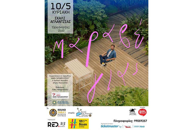 Ο Κωστής Μαραβέγιας ανοίγει τις καλοκαιρινές συναυλίες του RED στο Σκαλί Αγλαντζιάς, Κυριακή 10 Μαΐου 2026 στις 20:00. Εισιτήρια διαθέσιμα. --- Scroll down for English version 👇 --- Ο Κωστής Μαραβέγιας ανοίγει την πρώτη καλοκαιρινή συναυλία του RED στο Σκαλί Αγλαντζιάς στη Λευκωσία, την Κυριακή 10 Μαΐου 2026 στις 20:00. Παραγωγή: RED. 🎟️ Εισιτήρια από €20 (Ζώνη Β) / €25 (Ζώνη Α). Προπώληση: Ticketmaster.cy και ACS Courier. Ένα ολοκαίνουργιο live set σχεδιασμένο πάνω στην ατμόσφαιρα του χώρου και τη διάθεση του κοινού. Στη σκηνή, ακορντεόν, κιθάρα και πλήκτρα συναντούν τα κρουστά και τις congas του Μάρκος Ντέμιαν Γκόμεζ, τις ηλεκτρικές κιθάρες με ανατολίτικες πινελιές του Άγγελου Αγγελίδη, το κλαρινέτο του Χρήστου Καλκάνη και τον ηλεκτρονικό κόσμο του Νίκου Αγγλούπα. Συμμετέχουν οι χορωδίες υπό τη διεύθυνση της ΑΝΘΗΣ ΠΑΠΑΦΙΛΙΠΠΟΥ και η Παιδική Χορωδία Δήμου Λευκωσίας. Η εκδήλωση στηρίζεται από το RoundTable 1 Λευκωσίας υπέρ του Συνδέσμου Παιδιά με Ηπατικές Παθήσεις — Γιώργος Ψαράς. 🗓️ Πρόγραμμα Κυριακή, 10 Μαΐου 2026 | 20:00 (Σκαλί Αγλαντζιάς, Λευκωσία) Τηλέφωνο: 99059257 ❓ Συχνές Ερωτήσεις Ε: Πού μπορώ να αγοράσω εισιτήρια; Α: Τα εισιτήρια διατίθενται σε προπώληση από το Ticketmaster.cy και τα σημεία ACS Courier. Ε: Υπάρχει φιλανθρωπικός χαρακτήρας στην εκδήλωση; Α: Ναι. Η εκδήλωση στηρίζει τον Σύνδεσμο Παιδιά με Ηπατικές Παθήσεις – Γιώργος Ψαράς, μέσω του RoundTable 1 Λευκωσίας. Ε: Η συναυλία είναι σε εσωτερικό ή εξωτερικό χώρο; Α: Το Σκαλί Αγλαντζιάς είναι υπαίθριος χώρος εκδηλώσεων. --- EN Kostis Maravelias opens RED's first summer concert at Skali Aglantzias in Nicosia, Cyprus, on Sunday 10 May 2026 at 20:00. Produced by RED. 🎟️ Ticket prices start from €20 (Zone B) / €25 (Zone A). Pre-sale available at Ticketmaster.cy and ACS Courier points. A brand-new live set designed around the atmosphere of the venue and the energy of the audience. On stage, accordion, guitar, and keyboards meet the percussion and congas of Markos Demian Gomez, the electric guitars with eastern touches of Angelos Angelidis, the clarinet of Christos Kalkanis, and the electronic world of Nikos Angloupa. The evening is further enriched by the choirs directed by Anthi Papaphilippou and the Children's Choir of the Municipality of Nicosia. The event is supported by RoundTable 1 Nicosia in aid of the Association for Children with Hepatic Diseases — Giorgos Psaras. 🗓️ Schedule Sunday, 10 May 2026 | 20:00 (Skali Aglantzias, Nicosia) Phone: 99059257 ❓ FAQ Q: Where can I buy tickets? A: Tickets are available via pre-sale on Ticketmaster.cy and at ACS Courier points across Cyprus. Q: Does the event have a charitable element? A: Yes. The event supports the Association for Children with Hepatic Diseases — Giorgos Psaras, through RoundTable 1 Nicosia. Q: Is the venue indoors or outdoors? A: Skali Aglantzias is an open-air events venue. Explore more Concerts & Live Music → eventor.com.cy/events/category/concerts---live-music-114