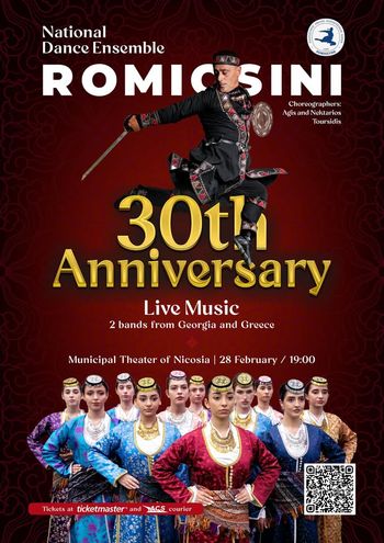 A powerful anniversary concert in Nicosia — February 2026. 100 dancers and live orchestras celebrate 30 years of Romiosini. Tickets available. Scroll down for English version 👇 Μια επετειακή βραδιά αφιερωμένη στην παράδοση, τον χορό και τη μουσική, με αφορμή τα 30 χρόνια του Εθνικού Χορευτικού Συγκροτήματος Ρωμιοσύνη. Το Σάββατο 28 Φεβρουαρίου 2026 στις 19:00, το Δημοτικό Θέατρο Λευκωσίας φιλοξενεί μια μεγάλη καλλιτεχνική συνάντηση γεμάτη ρυθμό και πολιτιστική δύναμη. 🎟️ Εισιτήρια διαθέσιμα. Στην παράσταση συμμετέχουν 100 χορευτές, 3 ορχήστρες και 20 μουσικοί από τη Γεωργία, την Ελλάδα και τον Πόντο, σε ένα εντυπωσιακό πρόγραμμα που ενώνει γεωργιανό μπαλέτο, αρχαίους ποντιακούς χορούς και ελληνική λαϊκή παράδοση 💃 Η συναυλία σηματοδοτεί τρεις δεκαετίες δημιουργικής πορείας του συγκροτήματος Ρωμιοσύνη, αναδεικνύοντας τη διαχρονική δύναμη της παράδοσης μέσα από σύγχρονη σκηνική παρουσία. Η διάρκεια της εκδήλωσης είναι περίπου 90 λεπτά και απευθύνεται σε κοινό κάθε ηλικίας που αγαπά τον πολιτισμό και τη ζωντανή σκηνή. 🗓️ Πρόγραμμα Σάββατο, 28 Φεβρουαρίου 2026 | 19:00 Εισιτήρια Ticketmaster Διαθέσιμα επίσης μέσω ACS Courier EN This anniversary concert in Nicosia, Cyprus celebrates 30 years of the National Dance Ensemble Romiosini with an energetic stage production. Taking place on Saturday, February 28, 2026 at 7:00 PM at the Nicosia Municipal Theatre, the event brings tradition to life through movement and music. 🎟️ Tickets available. The performance features 100 dancers, three orchestras, and 20 musicians from Georgia, Greece, and Pontos, blending Georgian ballet, ancient Pontic dance, and Greek folk tradition into one powerful celebration 🎶 Marking three decades of artistic presence, the concert highlights Romiosini’s contribution to preserving and reimagining cultural heritage through live performance. The show lasts approximately 90 minutes and is suitable for all ages. 🗓️ Schedule Saturday, February 28, 2026 | 19:00 Tickets via Ticketmaster Also available via ACS Courier Explore more Live Shows & Comedy → eventor.com.cy/events/category/live-shows---comedy-148 ❓ FAQ Q: What kind of event is this? A: A large-scale anniversary concert combining dance and live music. Q: Where does the concert take place? A: At the Nicosia Municipal Theatre. Q: How long is the performance? A: Approximately 90 minutes. Q: Where can I buy tickets? A: Online via Ticketmaster Cyprus and through ACS Courier.