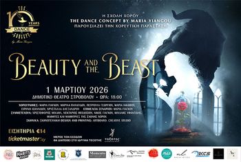 Beauty and the Beast dance performance in Nicosia, March 2026, a family-friendly show bringing the classic tale to life through movement and music. Scroll down for English version 👇 Η διαχρονική ιστορία της Πεντάμορφης και του Τέρατος ζωντανεύει επί σκηνής μέσα από τη μαγεία του χορού, σε μια εντυπωσιακή παράσταση που υπογράφει η σχολή χορού The Dance Concept by Maria Yiangou. Με φαντασία, συναίσθημα και καλλιτεχνική ευαισθησία, η παράσταση αναδεικνύει τη δύναμη της αγάπης, της αποδοχής και της εσωτερικής ομορφιάς. Με πρωτότυπες χορογραφίες, ταλαντούχους μαθητές και δασκάλους, μαγευτικά σκηνικά και εντυπωσιακά κοστούμια, το κοινό προσκαλείται σε ένα ταξίδι γεμάτο μουσική, φως και συγκίνηση. Η παράσταση είναι κατάλληλη για όλη την οικογένεια και υπόσχεται μια αξέχαστη εμπειρία για μικρούς και μεγάλους, συνδυάζοντας την τέχνη του χορού με τη μαγεία των παραμυθιών. 🎟️ Εισιτήρια από €14. 🗓️ Πρόγραμμα Κυριακή, 1 Μαρτίου 2026 | 18:00 (Δημοτικό Θέατρο Στροβόλου) Προπώληση εισιτηρίων: Ticketmaster Cy EN This dance performance in Nicosia, Cyprus brings the timeless story of Beauty and the Beast to life through movement, music, and visual storytelling. Created by The Dance Concept by Maria Yiangou, the production offers a fresh and imaginative interpretation of the beloved fairy tale. Featuring original choreography, dedicated young performers and teachers, elaborate sets, and beautiful costumes, the show highlights themes of love, acceptance, and inner beauty. Designed for audiences of all ages, it promises a memorable family-friendly experience filled with emotion and artistic expression. 🎟️ Ticket prices start from €14. 🗓️ Schedule Sunday, March 1, 2026 | 18:00 (Strovolos Municipal Theatre) Ticket presale: Ticketmaster Cy Explore more Live Shows & Comedy → eventor.com.cy/events/category/live-shows---comedy-148 ❓ FAQ Q: Is the performance suitable for children? A: Yes, the show is suitable for the whole family. Q: Where does the performance take place? A: At the Strovolos Municipal Theatre in Nicosia. Q: What type of show is this? A: It is a dance performance inspired by the fairy tale Beauty and the Beast. Q: How much do tickets cost? A: Tickets are priced at €14.