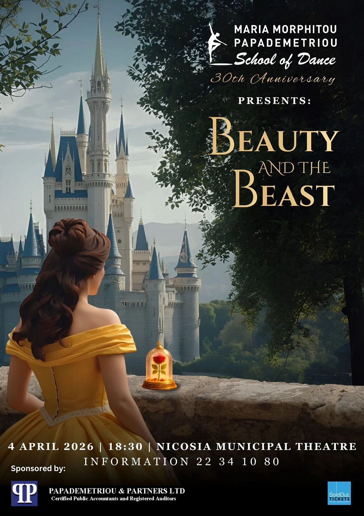 Χορευτική παράσταση εμπνευσμένη από την Πεντάμορφη και το Τέρας στο Δημοτικό Θέατρο Λευκωσίας, 4 Απριλίου 2026. Είσοδος από €15. --- Scroll down for English version 👇 --- Το Σάββατο 4 Απριλίου 2026 στις 18:30, το Δημοτικό Θέατρο Λευκωσίας φιλοξενεί μια χορευτική παράσταση εμπνευσμένη από το αγαπημένο παραμύθι της Πεντάμορφης και του Τέρατος. Πρόκειται για μια ιδιαίτερη βραδιά που συνδυάζει συναίσθημα, μουσική και χορό, κατάλληλη για μικρούς και μεγάλους. Η διάρκεια της παράστασης είναι 1 ώρα και 50 λεπτά. 🎟️ Εισιτήρια από €15. Μέσα από την κίνηση και τη μουσική, ζωντανεύει το μήνυμα πως η αγάπη μπορεί να μεταμορφώσει τα πάντα — μια υπενθύμιση πως η αληθινή ομορφιά βρίσκεται μέσα στην καρδιά μας. Η σχολή χορού που παρουσιάζει την παράσταση γιορτάζει παράλληλα μια σημαντική επέτειο: 30 χρόνια αγάπης και χορού. 🗓️ Πρόγραμμα Σάββατο, 4 Απριλίου 2026 | 18:30 (Δημοτικό Θέατρο Λευκωσίας) Για περισσότερες πληροφορίες και εισιτήρια, επικοινωνήστε απευθείας με τους διοργανωτές. --- EN This dance performance in Nicosia, Cyprus brings the beloved fairy tale of Beauty and the Beast to life through movement and music at the Nicosia Municipal Theatre on Saturday, April 4, 2026 at 18:30. Produced by a local dance school celebrating its 30th anniversary, the show is suitable for all ages and runs for 1 hour and 50 minutes. 🎟️ Ticket prices start from €15. The performance carries a timeless message — that true beauty and love lie within the heart — expressed through choreography, music, and the joy of shared celebration. Whether you are bringing young children or attending as an adult, the show promises an emotional and memorable evening. 🗓️ Schedule Saturday, April 4, 2026 | 18:30 (Nicosia Municipal Theatre) For more information and ticketing details, please contact the organiser directly. Explore more Family & Kids → eventor.com.cy/events/category/family---kids-112 --- ❓ FAQ Q: When and where does the performance take place? A: The performance takes place on Saturday, April 4, 2026 at 18:30 at the Nicosia Municipal Theatre. Q: What is the ticket price? A: Ticket prices start from €15. Q: Is the show suitable for children? A: Yes, the performance is suitable for all ages. Q: How long is the performance? A: The running time is 1 hour and 50 minutes.