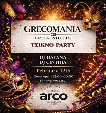 Carnival Latin Party in Nicosia, Cyprus — Salsa, Bachata & Kizomba on two dance floors at Bailemos Dance School. Party night with costumes. Scroll down for English version 👇 Η Bailemos Dance School Nicosia και ο Constantinos Charalambous παρουσιάζουν μια εκρηκτική Carnival Latin Party, μετατρέποντας τον χώρο σε δύο ζωντανούς κόσμους χορού, ρυθμού και φαντασίας. Η βραδιά είναι αφιερωμένη στην ελευθερία της έκφρασης, με έντονα latin vibes, DJ sets, performances και απρόβλεπτες εκπλήξεις. Οι συμμετέχοντες μπορούν να επιλέξουν το δικό τους μουσικό σύμπαν: το FUEGO για Salsa & Bachata ή το PARAISO αποκλειστικά για Kizomba. Το αποκριάτικο dress code δίνει τον τόνο — μάσκες, κοστούμια και δημιουργικές εμφανίσεις κάνουν τη βραδιά ακόμα πιο πολύχρωμη και διασκεδαστική. 🎭💃 Ο χώρος του Bailemos Dance School Nicosia προσφέρει άνεση και ενέργεια για χορό μέχρι αργά, με δύο ποτά να περιλαμβάνονται στην είσοδο. 🎟️ Είσοδος: €20 (περιλαμβάνει 2 ποτά) 🗓️ Πρόγραμμα Σάββατο, 21 Φεβρουαρίου | 21:30–late 📍 Χώρος: Bailemos Dance School Nicosia, Βαθύλακα 1, Στρόβολος, Λευκωσία EN Bailemos Dance School Nicosia and Constantinos Charalambous invite you to an electrifying Carnival Latin Party, transforming the venue into two vibrant dance worlds filled with rhythm, colour, and creativity. Expect DJ beats, live performances, surprises, and a high-energy carnival atmosphere. Choose your vibe and your floor: FUEGO for Salsa & Bachata, or PARAISO dedicated exclusively to Kizomba. Carnival costumes are highly encouraged — masks, bold outfits, and imaginative looks are all part of the experience. 🎭🔥 Hosted at Bailemos Dance School Nicosia, the party promises space, sound, and nonstop dancing into the night, with drinks included. 🎟️ Entrance: €20 (includes 2 drinks) 🗓️ Schedule Saturday, February 21 | 21:30–late 📍 Venue: Bailemos Dance School Nicosia, Vathylaka 1, Strovolos, Nicosia Explore more Nightlife & Parties → eventor.com.cy/events/category/nightlife---parties-128 ❓ FAQ Q: Are costumes mandatory? A: Costumes are not mandatory but strongly encouraged for the full carnival experience. Q: How many dance floors are available? A: Two — one for Salsa & Bachata, and one exclusively for Kizomba. Q: What is included in the ticket price? A: Entry and two drinks. Q: Will photos or videos be taken? A: Yes, media may be captured for promotional use; you can opt out by informing the organizers.