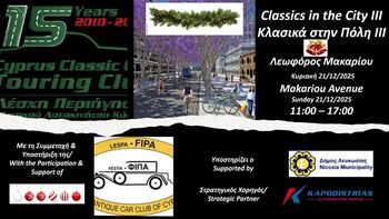 A classic car exhibition in central Nicosia — 21 Dec 2025, 11:00–17:00 at 360 Nicosia. Owners welcome to join; limited spaces. Charity support included. Scroll down for English version ⯆ Η Λέσχη Κλασικών Οχημάτων, με τη συμμετοχή και υποστήριξη της ΛΕΣΠΑ-ΦΙΠΑ, διοργανώνει την έκθεση «Κλασικά στην Πόλη ΙΙΙ – Classics in the City III», την Κυριακή 21 Δεκεμβρίου 2025 από τις 11:00 έως τις 17:00, μπροστά από το 360 Nicosia στο κέντρο της πρωτεύουσας. Η εκδήλωση είναι αφιερωμένη στα παιδιά της Παιδογκολογικής Κλινικής του Νοσοκομείου Αρχιεπίσκοπος Μακάριος ΙΙΙ. Μπορούν να συμμετάσχουν όλα τα κλασικά οχήματα που βρίσκονται σε εξαιρετική κατάσταση. Τα αυτοκίνητα θα σταθμεύσουν στην αριστερή λωρίδα της λεωφόρου προς τα φώτα τροχαίας του Αστυνομικού Σταθμού Λευκωσίας και πρέπει να βρίσκονται στο χώρο πριν τις 10:30. Ενθαρρύνεται η συμμετοχή ιδιοκτητών επετειακών μοντέλων του 2025, οι οποίοι θα λάβουν ειδική ονομαστική πλακέτα. Η επιλογή συμμετοχής θα βασιστεί στη σπανιότητα και την κατάσταση του οχήματος. Για κάθε αυτοκίνητο που λαμβάνει μέρος, η Λέσχη προσφέρει €10 για αγορά χριστουγεννιάτικων δώρων για τα παιδιά της Παιδογκολογικής Κλινικής. 🚗✨ 🗓️ Πρόγραμμα Κυριακή, 21 Δεκεμβρίου 2025 | 11:00–17:00 Τοποθεσία: 360 Nicosia, Λευκωσία Συμμετοχή οχημάτων: Άφιξη πριν τις 10:30 Πληροφορίες & Δηλώσεις συμμετοχής: • Ανδρέας Ζαχαρίας – 96825855 Επετειακά μοντέλα 2025 (ενδεικτικά): Riley RM, VW Type 2, BMW Isetta, Citroen DS, Ford Thunderbird, Jaguar MkI, MGA, Sunbeam Rapier, Suzuki (άνω των 30 ετών), Aston Martin DB6, Rolls Royce Silver Shadow, Porsche 912, BMW E21, Vauxhall Cavalier, VW Polo, BMW M5 E28, Mazda RX-7 EN The Cyprus Classic Car Touring Club, with the participation of LESPA-FIPA, presents “Classics in the City III”, a special classic car exhibition taking place on Sunday, December 21, 2025, from 11:00 to 17:00 in front of 360 Nicosia. The event is dedicated to supporting the children of the Pediatric Oncology Clinic at Archbishop Makarios III Hospital. All owners of classic vehicles in excellent condition are welcome to participate. Cars will park along the left lane of the avenue heading toward the Nicosia Police Station lights and must arrive before 10:30. Anniversary models of 2025 are especially encouraged to join; these owners will receive individualized commemorative plaques. Priority is based on rarity and condition of the vehicle. For each car taking part, the Club will donate €10 for Christmas gifts for the children at the clinic. 🚗✨ 🗓️ Schedule Sunday, December 21, 2025 | 11:00–17:00 Location: 360 Nicosia, Nicosia Vehicle arrival: Before 10:30 Contact for participation: • Andreas Zacharias – 96825855 Anniversary Models 2025 include: Riley RM, VW Type 2, BMW Isetta, Citroen DS, Ford Thunderbird, Jaguar MkI, MGA, Sunbeam Rapier, Suzuki (30+ yrs), Aston Martin DB6, Rolls Royce Silver Shadow, Porsche 912, BMW E21, Vauxhall Cavalier, VW Polo, BMW M5 E28, Mazda RX-7 Explore more Outdoor & Adventure → eventor.com.cy/events/category/outdoor---adventure-125 ❓ FAQ Q: Is the event free for visitors? A: Yes, attendance is free. Q: How can vehicle owners join the exhibition? A: By contacting the organisers and arriving before 10:30 on event day. Q: Which vehicles are prioritised? A: Anniversary models, rare models and vehicles in excellent condition. Q: Is the event connected to a charity? A: Yes — €10 per participating car is donated for gifts for children at Makarios III Hospital.