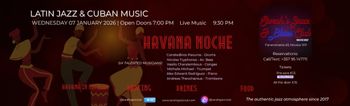 Experience Havana Noche in Nicosia — January 2026. Live Latin jazz & Cuban rhythms at Sarah’s Jazz Club. Tickets available. Scroll down for English version 👇 Η Αβάνα μεταφέρεται στη Λευκωσία για μια απογευματινή βραδιά γεμάτη ρυθμό, πνευστά και αυθεντική Latin jazz ενέργεια. Το Havana Noche φιλοξενείται στο Sarah’s Jazz & Blues Club, προσκαλώντας το κοινό σε ένα μουσικό ταξίδι στην καρδιά της Κούβας — χωρίς να φύγει από την πόλη. 🎟️ Εισιτήρια από €13 (προπώληση) | €15 στην είσοδο. Έξι εξαιρετικοί μουσικοί ενώνουν τις δυνάμεις τους: ο Κωνσταντίνος Παούρος στα τύμπανα, ο Νικόλας Τρυφωνος στο ακουστικό μπάσο και ο Βασίλης Χαραλάμπους στις congas κρατούν τον ρυθμό ζωντανό, ενώ ο Μιχάλης Μιχαήλ (τρομπέτα), ο Alex Edward Rodriguez (πιάνο) και ο Ανδρέας Θεοχάρους (τρομπόνι) συμπληρώνουν το σχήμα με εκρηκτική ενέργεια. Έλα πεινασμένος και διψασμένος — το club σερβίρει πίτσα, Jazz Platter, κοτοφτερούγες και αγαπημένα πιάτα, μαζί με κρασιά, κοκτέιλ, mocktails και παγωμένες μπύρες. Η παράσταση διαρκεί περίπου 120 λεπτά με διάλειμμα 15’, ενώ ο χώρος είναι προσβάσιμος (ράμπες, τουαλέτα ΑμεΑ, συνοδός/φροντιστής δωρεάν, σκύλοι υπηρεσίας επιτρέπονται). 🗓️ Πρόγραμμα Τετάρτη, 7 Ιανουαρίου 2026 | 20:00 (Φανερωμένης 63, Λευκωσία) Πληροφορίες & Κρατήσεις Phone: +357 95147711 EN Havana comes to Nicosia, Cyprus, for an early-evening burst of rhythm, horns, and heat. Havana Noche lands at Sarah’s Jazz & Blues Club, delivering authentic Latin jazz and Cuban vibes in an intimate club setting. 🎟️ Ticket prices start from €13 (pre-sale) | €15 at the door. Six outstanding musicians power the night: Constadinos Paouros (drums), Nicolas Tryphonos (acoustic bass), Vasilis Charalambous (congas), Michalis Michael (trumpet), Alex Edward Rodriguez (piano), and Andreas Theocharous (trombone). Expect groove-heavy arrangements, fiery solos, and pure dancefloor energy. Come hungry and thirsty — enjoy club favorites like pizza, the Jazz Platter, wings, plus wines, cocktails, mocktails, and cold beers. The show runs about 120 minutes with a 15-minute intermission. The venue is accessible with ramps, accessible restrooms, companion support, and service dogs allowed. 🗓️ Schedule Wednesday, January 7, 2026 | 20:00 (Faneromenis 63, Nicosia) Information & Bookings Phone: +357 95147711 Explore more Concerts & Live Music → eventor.com.cy/events/category/concerts---live-music-114 ❓ FAQ Q: What music style can I expect? A: Live Latin jazz with Cuban rhythms and strong horn lines. Q: Where is the venue located? A: Sarah’s Jazz & Blues Club, Faneromenis 63, Old Nicosia. Q: How long is the performance? A: About 120 minutes with a 15-minute intermission. Q: Is the venue accessible? A: Yes—ramps, accessible restroom, companion support, and service dogs are allowed.