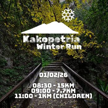 Trail running event in Kakopetria, Cyprus — February 1, 2026. Mountain routes, kids race and scenic forest paths. Tickets available. Scroll down for English version ⯆ Ένας ξεχωριστός χειμερινός αγώνας ορεινού τρεξίματος επιστρέφει στην καρδιά της Κακοπετριάς, προσκαλώντας δρομείς κάθε ηλικίας να ζήσουν μια αυθεντική εμπειρία μέσα στη φύση. Το Kakopetria Winter Run 2026 συνδυάζει άσκηση, πρόκληση και μοναδικά τοπία στο Τρόοδος. 🎟️ Εισιτήρια από €25. Ο αγώνας διεξάγεται κυρίως σε παρθένο δασικό τοπίο. Η διαδρομή ξεκινά από το μονοπάτι δίπλα στον ποταμό Καρκώτη, διασχίζει την καταπράσινη κοιλάδα και περνά κοντά από τις εγκαταστάσεις του παλιού ορυχείου χρωμίου, καθώς και από την εκκλησία του Αγίου Νικολάου της Στέγης (12ος αιώνας), προσφέροντας έναν σπάνιο συνδυασμό φύσης και πολιτιστικής κληρονομιάς. 🌲 Οι συμμετέχοντες μπορούν να επιλέξουν ανάμεσα σε δύο απαιτητικές αλλά απολαυστικές διαδρομές: 15 km με +600 μ. υψομετρική διαφορά 7.7 km με +300 μ. υψομετρική διαφορά Υπάρχει επίσης αγώνας 1 km για παιδιά, κάνοντας τη διοργάνωση ιδανική για όλη την οικογένεια. Σε όλους τους εγγεγραμμένους προσφέρεται δωρεάν τεχνικό t-shirt. 🗓️ Πρόγραμμα Κυριακή, 1 Φεβρουαρίου 2026 07:00–08:30 | Παραλαβή αριθμών 08:00 | Προθέρμανση 08:30 | Εκκίνηση 15 km 09:00 | Εκκίνηση 7.7 km 11:00 | Παιδικός αγώνας 1 km 11:30 | Απονομές (Κακοπετριά) Πληροφορίες Instagram: @kakopetriarun EN This winter trail running event in Kakopetria, Cyprus invites runners of all levels to experience mountain racing in one of the island’s most scenic villages. Kakopetria Winter Run 2026 offers a perfect mix of challenge, nature, and community spirit in the Troodos mountains. 🎟️ Ticket prices start from €25. The race takes place mostly on pristine forest trails, starting alongside the Karkotis River and running through a beautiful valley landscape. The route passes near the former chromium mine facilities and the UNESCO-listed Church of Agios Nikolaos tis Stegis (12th century), creating a truly unique running experience. Participants can choose between two main distances: 15 km with +600 m elevation gain 7.7 km with +300 m elevation gain A 1 km kids race is also included, making the event family-friendly. All registered runners receive a free technical t-shirt. 🗓️ Schedule Sunday, February 1, 2026 07:00–08:30 | Bib pickup 08:00 | Warm-up 08:30 | 15 km race start 09:00 | 7.7 km race start 11:00 | 1 km kids race 11:30 | Awards ceremony (Kakopetria) Info Instagram: @kakopetriarun Explore more Sports & Fitness → eventor.com.cy/events/category/sports---fitness-111 ❓ FAQ Q: Is the event suitable for beginners? A: Yes, especially the 7.7 km route and the kids race. Q: What is included in the registration? A: Race participation and a free technical t-shirt. Q: Where does the race take place? A: In Kakopetria village, along forest and river trails. Q: What is the registration deadline? A: January 26, 2026.