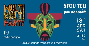 MultiKulti Party at Stou Teli Youssooroom Stage, Nicosia Old Town on Saturday April 18, 2026 from 23:30 — Radio Pangea spins unique sounds from around the world. Entry €5. --- Scroll down for English version 👇 --- Το Σάββατο 18 Απριλίου 2026, από τις 23:30 έως τις 02:30, το Stou Teli Youssooroom Stage στην Παλιά Λευκωσία (Πατριάρχου Γρηγορίου 7) μετατρέπεται σε ένα παγκόσμιο μουσικό καζάνι. Το MultiKulti Party φέρνει beats και ρυθμούς από όλη την υφήλιο κάτω από μια στέγη, με DJ Radio Pangea στα decks. Μια γιορτή πολυπολιτισμικότητας, ενότητας και της καθολικής γλώσσας της μουσικής. 🎟️ Εισιτήρια €5. 🗓️ Πρόγραμμα Σάββατο, 18 Απριλίου 2026 | 23:30–02:30 (Stou Teli Youssooroom Stage, Πατριάρχου Γρηγορίου 7, Παλιά Λευκωσία) Phone: +357 99907501 --- EN This multicultural party night in Nicosia, Cyprus takes place at Stou Teli Youssooroom Stage, Patriarchou Grigoriou 7, Nicosia Old Town on Saturday, April 18, 2026 from 23:30 to 02:30. Organised by Radio Pangea, MultiKulti Parties, and Barçın Gökbörü, the night is a vibrant celebration of cultures — beats and rhythms from around the world coming together on one dancefloor. DJ Radio Pangea spins an eclectic mix of global sounds that will take you on a journey across the globe. 🎟️ Entry: €5. 🗓️ Schedule Saturday, April 18, 2026 | 23:30–02:30 (Stou Teli Youssooroom Stage, Patriarchou Grigoriou 7, Nicosia Old Town) Phone: +357 99907501 Explore more Nightlife & Parties → eventor.com.cy/events/category/nightlife---parties-128 --- ❓ FAQ Q: When and where does the MultiKulti Party take place? A: The event takes place on Saturday, April 18, 2026 from 23:30 to 02:30 at Stou Teli Youssooroom Stage, Patriarchou Grigoriou 7, Nicosia Old Town. Q: What kind of music is played? A: DJ Radio Pangea plays an eclectic mix of unique sounds from around the world — a global groove celebration of diverse cultures and rhythms. Q: What is the entry price? A: Entry is €5. Q: How do I get more information? A: Call +357 99907501 for information.
