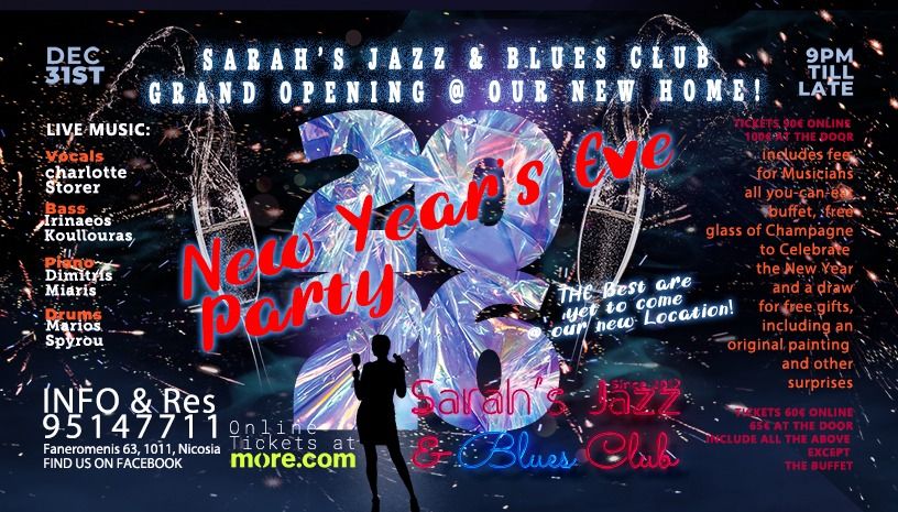 New Year’s Eve live jazz party in Nicosia, Cyprus — December 31, 2025. Charlotte Storer & band, dining options available. Tickets available. Scroll down for English version ⯆ Η τελευταία νύχτα του 2025 και η πρώτη του 2026 γιορτάζονται με ρυθμό, κομψότητα και ζωντανή jazz στη Λευκωσία. Το Sarah’s Jazz & Blues Club υποδέχεται το κοινό στο νέο του χώρο στη Φανερωμένη για ένα αξέχαστο New Year’s Eve live music party γεμάτο μουσικές εκπλήξεις. 🎟️ Εισιτήρια από €60. Η Charlotte Storer εμφανίζεται επί σκηνής μαζί με τον πιανίστα Δημήτρη Μιάρη, τον μπασίστα Ιερεναίο Κουλλουρά και τον ντράμερ Μάριο Σπύρου, προσφέροντας μια βραδιά γεμάτη swing, jazz και χορό μέχρι αργά 🎷 Το πρόγραμμα συνοδεύεται από εξαιρετικά κρασιά, κοκτέιλ και γιορτινή ατμόσφαιρα. Οι επισκέπτες μπορούν να επιλέξουν ανάμεσα σε δύο κατηγορίες εισιτηρίων: με ή χωρίς φαγητό. Το εισιτήριο με φαγητό περιλαμβάνει πλούσιο εορταστικό all-you-can-eat μπουφέ με πιάτα από όλο τον κόσμο — κρέατα, θαλασσινά, σούπες, σαλάτες και vegetarian επιλογές 🍽️ Όλα τα εισιτήρια περιλαμβάνουν ένα ποτήρι σαμπάνιας για την αλλαγή του χρόνου και συμμετοχή σε κλήρωση δώρων, μεταξύ των οποίων έργο της Sarah Fenwick. Η βραδιά σηματοδοτεί και μια νέα αρχή για το αγαπημένο jazz στέκι της πόλης, στο νέο του χώρο, με την ίδια ζεστή ατμόσφαιρα που το κοινό αγαπά. EN A New Year’s Eve live music party in Nicosia, Cyprus, welcomes 2026 at Sarah’s Jazz & Blues Club in its new Faneromenis location. On December 31, 2025, enjoy an elegant night of swing and jazz as the year comes to a close and a new one begins. 🎟️ Ticket prices start from €60. Vocalist Charlotte Storer performs alongside pianist Dimitris Miaris, bassist Irenaeos Koullouras, and drummer Marios Spyrou, delivering a vibrant jazz experience filled with surprises, dancing, and musical joy 🎶 The evening is paired with great wines, cocktails, and a festive spirit throughout the night. Guests can choose between two ticket options: with or without food. The dining option includes a festive all-you-can-eat buffet featuring international dishes, meat, seafood, soups, salads, and vegetarian choices. All tickets include a complimentary glass of champagne at midnight and entry into a gift draw, including artwork by Sarah Fenwick. Celebrate the arrival of 2026 in a new space, with the same beloved atmosphere and a night dedicated to music, celebration, and togetherness. Explore more Concerts & Live Music → eventor.com.cy/events/category/concerts---live-music-114 ❓ FAQ Q: Where does the New Year’s Eve party take place? A: At Sarah’s Jazz & Blues Club, Faneromenis 63, Nicosia. Q: What ticket options are available? A: Tickets are available with food or without food, each with different pricing. Q: Does the ticket include food? A: Only the higher-priced ticket includes an all-you-can-eat festive buffet. Q: Is anything included with all tickets? A: Yes, all tickets include a free glass of champagne and entry into a gift draw.