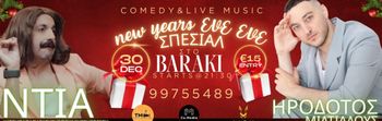 Κωμωδία και live μουσική στη Λευκωσία — 30 Δεκεμβρίου 2025. NTIA x Ηρόδοτος NYEE Special στο Baraki. Εισιτήρια διαθέσιμα. Scroll down for English version ⯆ Μια εκρηκτική βραδιά κωμωδίας και ζωντανής μουσικής έρχεται λίγο πριν την αλλαγή του χρόνου στη Λευκωσία. Την Τρίτη 30 Δεκεμβρίου 2025, το Baraki Live φιλοξενεί το NTIA x Ηρόδοτος NYEE Special, έναν μοναδικό συνδυασμό χιούμορ, μουσικής και… «ισιωμάτων». 🎟️ Εισιτήρια από €15. Η αγαπημένη HR Manager κα ΝΤΙΑ ανεβαίνει στη σκηνή για να «ισιώσει» τον αγαπημένο τραγουδιστή Ηρόδοτο Μιλτιάδους, σε μια παράσταση γεμάτη κωμικές ανατροπές, ζωντανές μουσικές στιγμές και χριστουγεννιάτικη – πρωτοχρονιάτικη διάθεση 🎤 Το αποτέλεσμα είναι ένα απρόβλεπτο live show που κινείται ανάμεσα στη σάτιρα και τη μουσική, με έντονη αλληλεπίδραση και αυθεντική σκηνική ενέργεια. Η παραγωγή υπογράφεται από την Co.Media, με χορηγό την Axel.Shop και χορηγούς επικοινωνίας τα TMC και ElMoustache Channel. Απαραίτητη η κράτηση και η κατοχή εισιτηρίου για είσοδο. 🗓️ Πρόγραμμα Τρίτη, 30 Δεκεμβρίου 2025 | 21:30–01:30 (Baraki Live, Λευκωσία) Κρατήσεις: 99755489 EN A comedy and live music night in Nicosia, Cyprus, takes place on Tuesday, December 30, 2025, at Baraki Live with the NTIA x Irodotos NYEE Special. This end-of-year show blends humour, music, and festive energy into a one-of-a-kind live experience. 🎟️ Ticket prices start from €15. Beloved HR Manager NTIA joins singer Irodotos Miltiadous on stage for an evening full of comedic twists, live performances, and playful “straightening-out” moments. Expect laughter, music, and a warm New Year’s Eve Eve vibe that keeps the audience entertained from start to finish 🎶 Produced by Co.Media, the event promises a lively atmosphere and a strong stage presence, making it a perfect way to celebrate the final nights of 2025 with humour and sound. 🗓️ Schedule Tuesday, December 30, 2025 | 21:30–01:30 (Baraki Live, Nicosia) Reservations: +357 99755489 Explore more Live Shows & Comedy → eventor.com.cy/events/category/live-shows---comedy-148 ❓ FAQ Q: What kind of show is this? A: A mix of comedy and live music with a festive NYEE theme. Q: Where does the event take place? A: At Baraki Live in Nicosia. Q: What time does the show start? A: The show starts at 21:30. Q: Is reservation required? A: Yes, reservation and a valid ticket are required for entry.