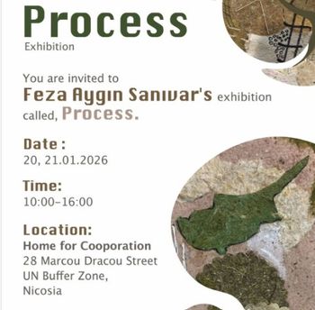 Discover Process, an art exhibition by Feza Aygin Sanivar in Nicosia, exploring handmade paper, memory, and identity over two January exhibition days. Scroll down for English version 👇 Η έκθεση Process της Feza Aygin Sanivar παρουσιάζεται στις 20 και 21 Ιανουαρίου στον χώρο Home for Cooperation, προσκαλώντας το κοινό σε μια ήσυχη, στοχαστική εμπειρία γύρω από το υλικό, τη μνήμη και τον τόπο. Μέσα από χειροποίητο χαρτί φτιαγμένο από κυπριακά φυτά, τα έργα αναδεικνύουν τη λεπτή σχέση ανάμεσα στη γη, την ταυτότητα και την ιστορία. Κάθε έργο προκύπτει από μια αργή και συνειδητή διαδικασία, βαθιά ριζωμένη στο κυπριακό τοπίο και τις σύγχρονες πραγματικότητές του. Η έκθεση μάς καλεί να παρατηρήσουμε πιο προσεκτικά τις αθέατες συνδέσεις ανάμεσα στη φύση και τα κοινωνικά ζητήματα που διαμορφώνουν το νησί σήμερα. 🗓️ Πρόγραμμα Τρίτη, 20 Ιανουαρίου 2026 | 10:00–16:00 (Home for Cooperation – Conference Room, Λευκωσία) Τετάρτη, 21 Ιανουαρίου 2026 | 10:00–16:00 (Home for Cooperation – Conference Room, Λευκωσία) Για περισσότερες πληροφορίες και εγγραφές, επικοινωνήστε απευθείας με τους διοργανωτές. EN This art exhibition in Nicosia, Cyprus presents Process by Feza Aygin Sanivar, hosted at Home for Cooperation on January 20 and 21. Using handmade paper crafted from Cypriot plants, the exhibition explores the fragile connections between land, memory, and identity. Each piece emerges from a slow, deliberate process rooted in the Cypriot landscape, inviting visitors to reflect on material, place, and the unseen relationships between nature and contemporary social realities. Process offers a calm, immersive encounter with paper as both medium and witness. 🗓️ Schedule Tuesday, January 20, 2026 | 10:00–16:00 (Home for Cooperation – Conference Room, Nicosia) Wednesday, January 21, 2026 | 10:00–16:00 (Home for Cooperation – Conference Room, Nicosia) For more information and registration details, please contact the organiser directly. Explore more Art & Markets → eventor.com.cy/events/category/art---markets-118 ❓ FAQ Q: Where does the exhibition take place? A: At Home for Cooperation – Conference Room in Nicosia. Q: What are the exhibition dates? A: January 20 and 21, 2026. Q: What time is the exhibition open? A: From 10:00 to 16:00 on both days. Q: What is the exhibition about? A: It explores handmade paper as a medium to reflect on land, memory, and identity.