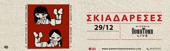 Experience Skiadareses live at DownTown Live, Nicosia, Cyprus — December 29, 2025. A powerful rock night before New Year’s Eve. Tickets available now. Scroll down for English version ↓ Οι Σκιαδαρέσες επιστρέφουν στη Λευκωσία για μια δυνατή ροκ συναυλία στο DownTown Live, στις 29 Δεκεμβρίου 2025. Ένα εκρηκτικό live λίγο πριν την αλλαγή του χρόνου, γεμάτο ενέργεια, ρυθμό και αγαπημένες επιτυχίες. Οι πόρτες ανοίγουν στις 21:30 και η συναυλία ξεκινά στις 22:30. 🎟️ Εισιτήρια από €20. Η προπώληση ισχύει τόσο για το bar όσο και για τα τραπέζια, με ελάχιστη κατανάλωση €15 ανά άτομο για κρατήσεις σε τραπέζια. Για πληροφορίες και κρατήσεις, καλέστε στο 99810011. Η είσοδος επιτρέπεται μόνο σε άτομα άνω των 18 ετών. Διοργανωτής: Ark Productions. 🗓️ Πρόγραμμα Δευτέρα, 29 Δεκεμβρίου 2025 | 21:30–03:00 Τηλέφωνο: 99810011 EN The legendary Skiadareses are coming to Nicosia for a powerful live concert at DownTown Live on December 29, 2025. A high-energy rock night just before New Year’s Eve, filled with passion, rhythm, and timeless hits. Doors open at 21:30, show starts at 22:30. 🎟️ Ticket prices start from €20. Presale tickets are available for both bar and table areas, with a minimum spend of €15 per person for table reservations. For bookings, call 99810011. Admission is restricted to guests over 18. Organizer: Ark Productions. 🗓️ Schedule Monday, December 29, 2025 | 21:30–03:00 Phone: 99810011 Explore more Concerts & Live Music → eventor.com.cy/events/category/concerts---live-music-114 ❓ FAQ Q: What time does the concert start? A: Doors open at 21:30 and the concert starts at 22:30. Q: Is there an age restriction? A: Yes, entry is allowed only for guests over 18 years old. Q: How can I book a table? A: Table reservations require 4–6 tickets and a minimum spend of €15 per person. Call 99810011 for bookings. Q: Can I cancel or change my ticket? A: No, cancellations or changes are not permitted by the organizer’s policy.