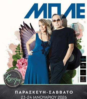 Απολαύστε δύο live βραδιές με τους Μπλε στην Πάφο τον Ιανουάριο, στο Kimolia Live—ένα κορυφαίο ελληνικό συγκρότημα με διαχρονικά τραγούδια. Scroll down for English version 👇 Ξεκινώντας από τη Θεσσαλονίκη, οι Μπλε έχουν διαγράψει μια μακρά και επιτυχημένη πορεία, με έντονη παρουσία στις μεγαλύτερες μουσικές σκηνές της Ελλάδας και εμφανίσεις στο εξωτερικό. Την Παρασκευή 23 και το Σάββατο 24 Ιανουαρίου, φιλοξενούνται στο Kimolia Live, για δύο βραδιές γεμάτες αγαπημένα τραγούδια που έχουν «ντύσει» την καθημερινότητά μας με χρώμα και συναίσθημα. Οι θέσεις είναι εξαιρετικά περιορισμένες και οι κρατήσεις πραγματοποιούνται μόνο με αγορά εισιτηρίων. Τα εισιτήρια διατίθενται από την Παρασκευή 9 Ιανουαρίου, αποκλειστικά από τον χώρο της Κιμωλίας μετά τις 19:30, στις εξής ημερομηνίες: Παρασκευή 9/1, Σάββατο 10/1, Παρασκευή 16/1 και Σάββατο 17/1. 🗓️ Πρόγραμμα Παρασκευή, 23 Ιανουαρίου | Kimolia Live (Πάφος) Σάββατο, 24 Ιανουαρίου | Kimolia Live (Πάφος) Phone: 7007 1000 EN This live music event in Paphos, Cyprus welcomes the iconic Greek band Mple for two consecutive concert nights at Kimolia Live, on Friday 23 and Saturday 24 January. Originating from Thessaloniki, Mple have built a lasting legacy with songs that continue to shape the Greek music landscape. Seating is extremely limited, and reservations are accepted only through ticket purchase. Tickets are available in person from the venue after 19:30 on January 9, 10, 16, and 17. Expect an intimate atmosphere and a carefully curated live set featuring some of the band’s most loved tracks. 🗓️ Schedule Friday, January 23 | Kimolia Live (Paphos) Saturday, January 24 | Kimolia Live (Paphos) Phone: 7007 1000 Explore more Concerts & Live Music → eventor.com.cy/events/category/concerts---live-music-114 ❓ FAQ Q: Where does the event take place? A: At Kimolia Live in Paphos. Q: How can I make a reservation? A: Reservations are made only by purchasing a ticket in advance from the venue. Q: Are seats limited? A: Yes, seating is extremely limited. Q: How can I get more information? A: You can call 7007 1000 or contact the organisers directly.