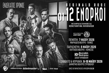 Οι 12 Ένορκοι — η μακροβιότερη θεατρική παράσταση στην Ελλάδα έρχεται σε Πάφο, Λεμεσό και Λευκωσία, Μάιος 2026. Εισιτήρια διαθέσιμα. --- Scroll down for English version 👇 --- Η μακροβιότερη θεατρική παράσταση της Αθήνας, «Οι 12 Ένορκοι», έρχεται στην Κύπρο για τέσσερις παραστάσεις σε Πάφο, Λεμεσό και Λευκωσία. Μετά από 11 χρόνια sold out παραστάσεων στην Ελλάδα, η καθηλωτική αυτή παράσταση σε σκηνοθεσία Κωνσταντίνας Νικολαΐδη μετατρέπει τη σκηνή σε δικαστικό μέγαρο, φέρνοντας τους θεατές αντιμέτωπους με τις συνειδήσεις τους. 🎟️ Εισιτήρια από €20. Το σενάριο μας μεταφέρει στη Νέα Υόρκη του 1957, όπου ένα 16χρονο αλλοδαπό αγόρι κατηγορείται για πατροκτονία. Η ζωή του βρίσκεται στα χέρια 12 ενόρκων που πρέπει να αποφασίσουν ομόφωνα — αν βρεθεί ένοχος, η θανατική ποινή είναι υποχρεωτική. Κλειδωμένοι σε ένα μικρό δωμάτιο, οι 12 άντρες συγκρούονται και ταυτίζονται, αντικατοπτρίζοντας τις προκαταλήψεις της κοινωνίας μέσα από 12 πεντακάθαρα ψυχογραφήματα. Κάθε ψηφοφορία είναι μια μάχη με μοναδικό όπλο την αλήθεια. Πρωταγωνιστούν (αλφαβητικά): Ράφαελ Αριστοτέλους, Τάσος Γιαννόπουλος, Μάνος Ζαχαράκος, Νικόλας Καλιδώνης, Αλέξανδρος Καλπακίδης, Βαγγέλης Κρανιώτης, Κωνσταντίνος Μπάζας, Παντελής Παπαδόπουλος, Τάσος Παπαδόπουλος, Πήτερ Ραντλ, Ορέστης Τρίκας, Γιάννης Φιλίππου. Τη φωνή της χαρίζει η Νένα Μεντή. Διάρκεια: 105 λεπτά χωρίς διάλειμμα. 🗓️ Πρόγραμμα Τετάρτη, 7 Μαΐου 2026 | 20:30 (Μαρκίδειο Δημοτικό Θέατρο Πάφου) Πέμπτη, 8 Μαΐου 2026 | 18:00 & 20:30 (Παττίχειο Δημοτικό Θέατρο Λεμεσού) Παρασκευή, 9 Μαΐου 2026 | 20:30 (Δημοτικό Θέατρο Στροβόλου, Λευκωσία) Σάββατο, 10 Μαΐου 2026 | 20:30 (Δημοτικό Θέατρο Στροβόλου, Λευκωσία) ❓ Συχνές Ερωτήσεις Ε: Υπάρχει διάλειμμα; Α: Όχι, η παράσταση διαρκεί 105 λεπτά χωρίς διάλειμμα. Ε: Σε ποια γλώσσα είναι η παράσταση; Α: Η παράσταση παίζεται στα ελληνικά. Ε: Η παράσταση είναι κατάλληλη για εφήβους; Α: Το θέμα αφορά δικαστικό δράμα με ηθικά διλήμματα. Επικοινωνήστε με τους διοργανωτές για καθοδήγηση ηλικιακής καταλληλότητας. --- EN "The 12 Jurors," the longest-running theatre production in Athens, comes to Cyprus for four performances across Paphos, Limassol, and Nicosia. After 11 years of sold-out shows in Greece, this gripping production directed by Konstantina Nikolaidi transforms the stage into a courtroom, confronting audiences with questions of conscience and justice. 🎟️ Ticket prices start from €20. Set in 1957 New York, the story follows twelve jurors locked in a small room as they decide the fate of a 16-year-old immigrant boy accused of patricide. Their verdict must be unanimous — if found guilty, the death penalty is mandatory. As they clash and align, the jurors reveal the prejudices of society through twelve vivid character portraits that unfold before the audience. Every vote is a battle, and truth is the only weapon. The cast features Rafaél Aristotelous, Tasos Giannopoulos, Manos Zacharakos, Nikolas Kalidonis, Alexandros Kalpakidis, Vangelis Kraniotis, Konstantinos Bazas, Pantelis Papadopoulos, Tasos Papadopoulos, Peter Randl, Orestis Trikas, and Giannis Filippou, with the voice of Nena Menti. Duration: 105 minutes with no interval. 🗓️ Schedule Wednesday, May 7, 2026 | 20:30 (Markideion Municipal Theatre, Paphos) Thursday, May 8, 2026 | 18:00 & 20:30 (Pattichion Municipal Theatre, Limassol) Friday, May 9, 2026 | 20:30 (Strovolos Municipal Theatre, Nicosia) Saturday, May 10, 2026 | 20:30 (Strovolos Municipal Theatre, Nicosia) ❓ FAQ Q: Is there an interval? A: No, the performance runs for 105 minutes without an interval. Q: What language is the performance in? A: The performance is in Greek. Q: Is the play suitable for teenagers? A: The subject matter involves courtroom drama with moral dilemmas. Contact the organisers for age suitability guidance. Explore more Theatre & Cinema → eventor.com.cy/events/category/theatre---cinema-123